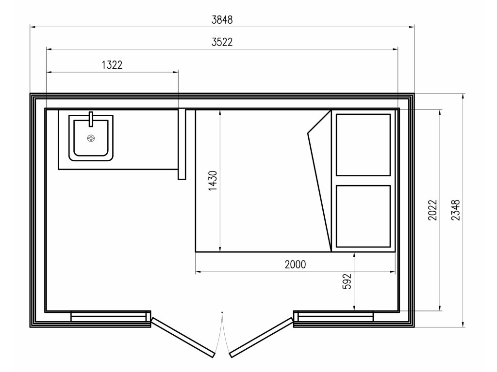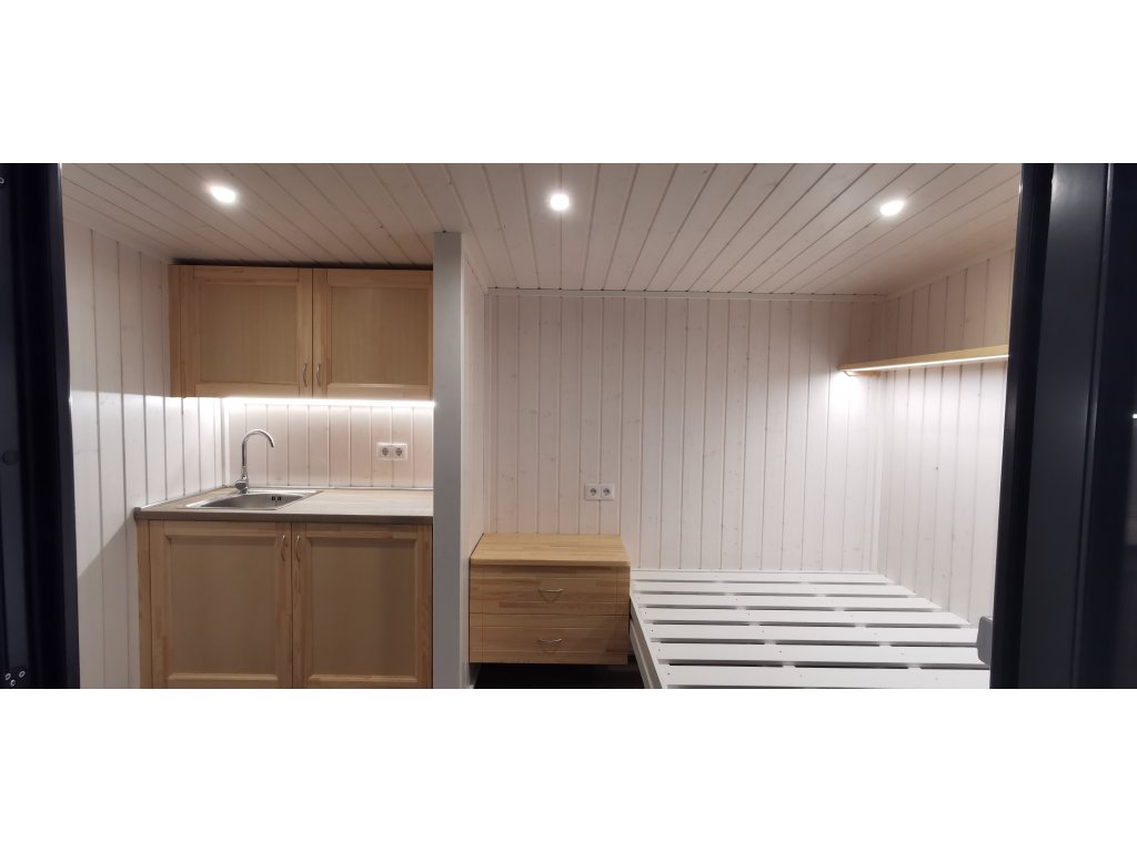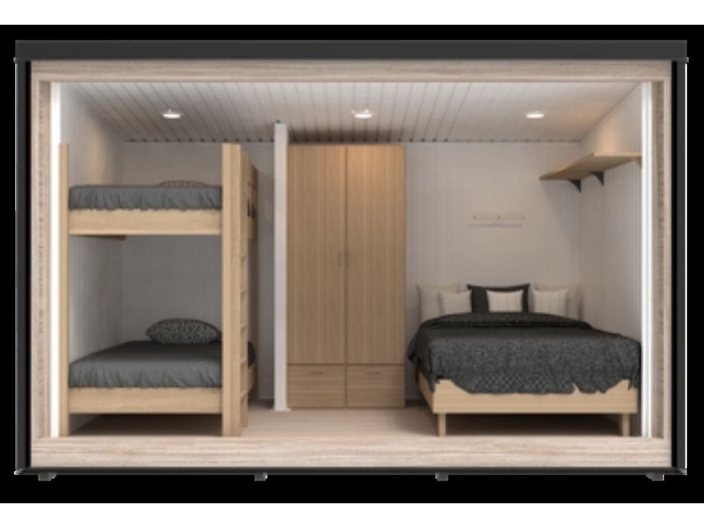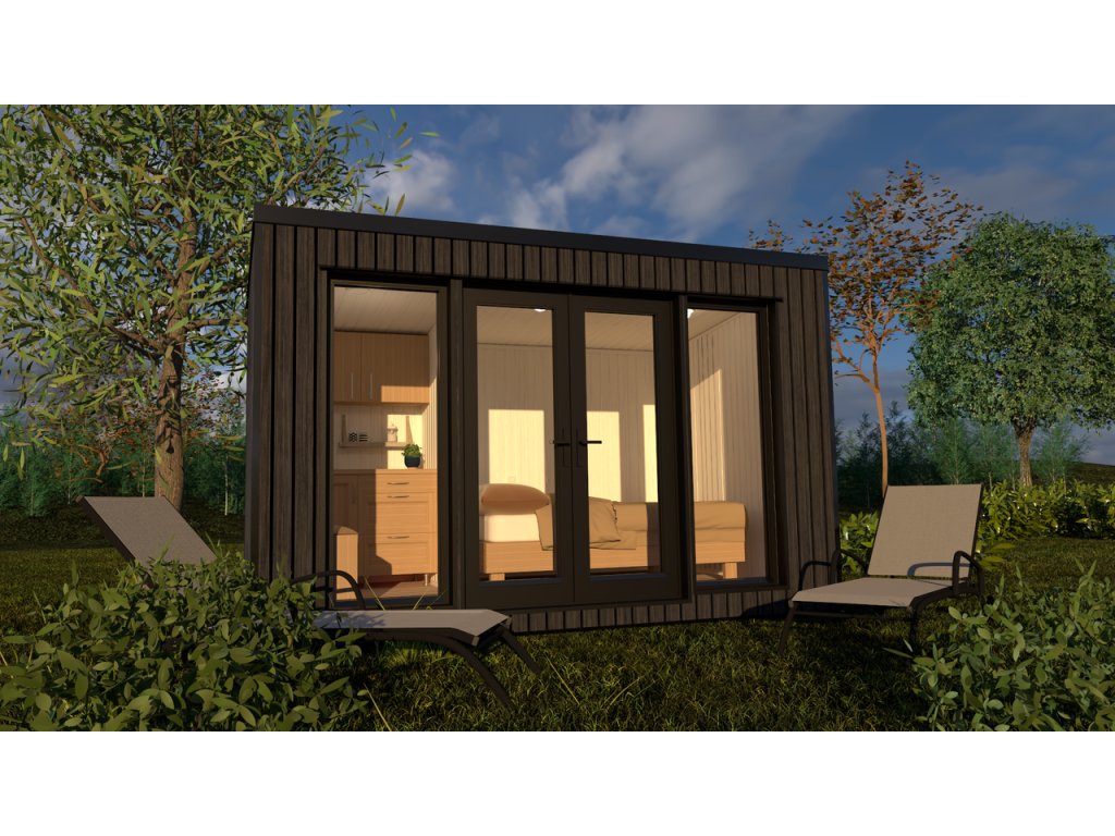 Nejmenší modul o velikosti 3,9 × 2,3 m je vhodný pro jednotlivce nebo páry, ale skvěle poslouží i jako kancelář, ateliér, prostor pro rekreaci nebo ubytování hostů.
