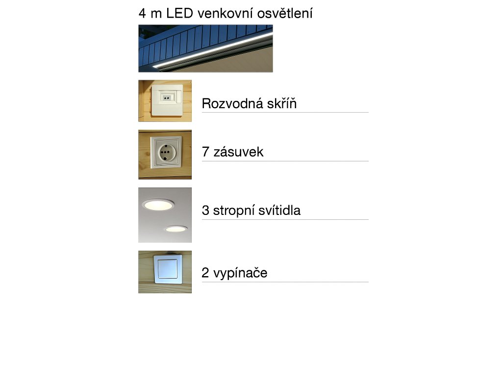 | Izolace z minerální vaty: | 100 mm (stěny, střecha); 120 mm (podlaha) |