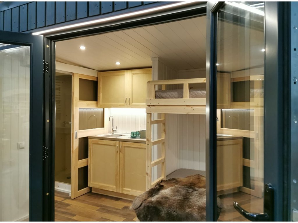 Standardní modul o velikosti 4,9 × 2,3 m (9,19 m²) je vhodný pro jednotlivce nebo páry, ale skvěle poslouží i jako kancelář, ateliér, prostor pro rekreaci nebo ubytování hostů.
