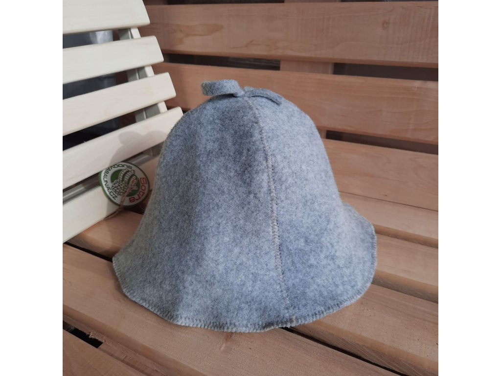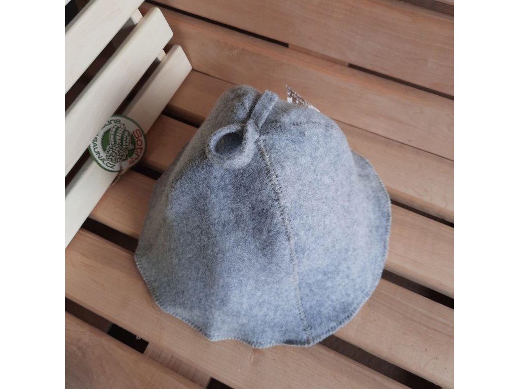Klobouk do sauny je voděodolný, vyhotovený v tradičním designu ze 40% vlněné plsti a prošitý hnědou nitkou. Na vrchu má praktické ouško na zavěšení. Velikost klobouku je přizpůsobena pohodlnému nošení pro muže i ženy.
