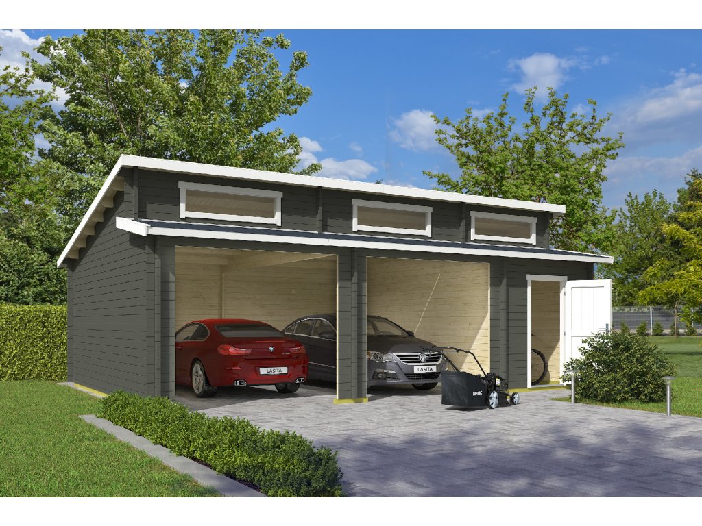 Hawaii je naše největší garáž se stupňovitou střechou – hlavní místnost je vhodná pro dvě vozidla a menší samostatná místnost je skvělá pro uskladnění vašeho zahradního nářadí nebo jiného náčiní. Ve střeše jsou tři obdélníková fixní okna pro větší světelnost místností.