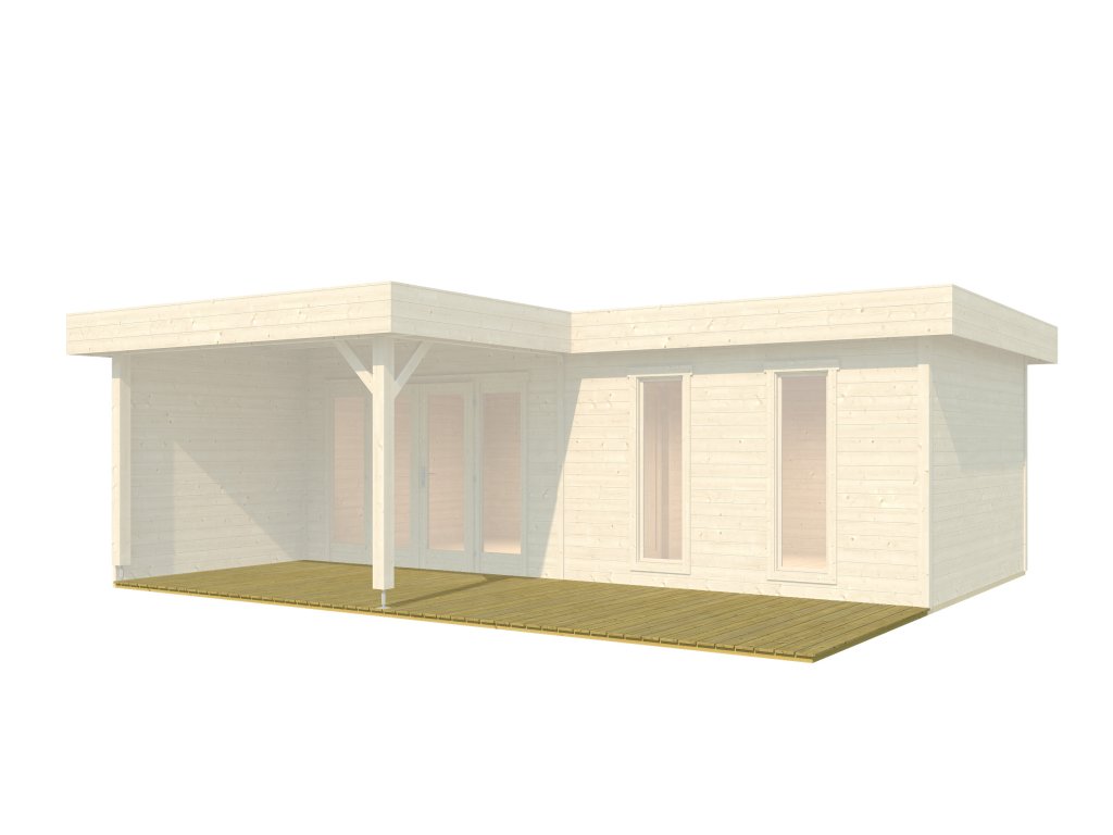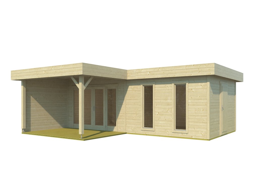 Dřevěný zahradní domek s přístřeškem Brava 2, 2 místnosti, 700 x 350 cm, 44 mm