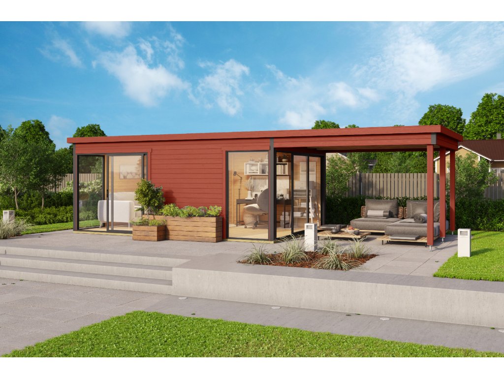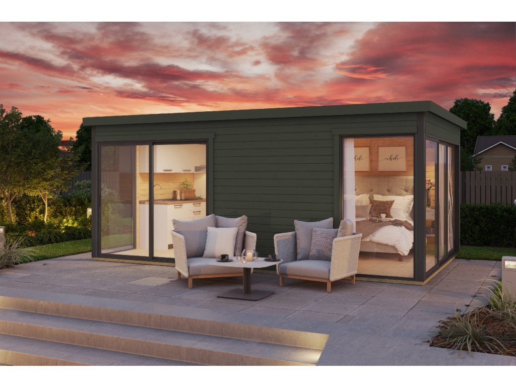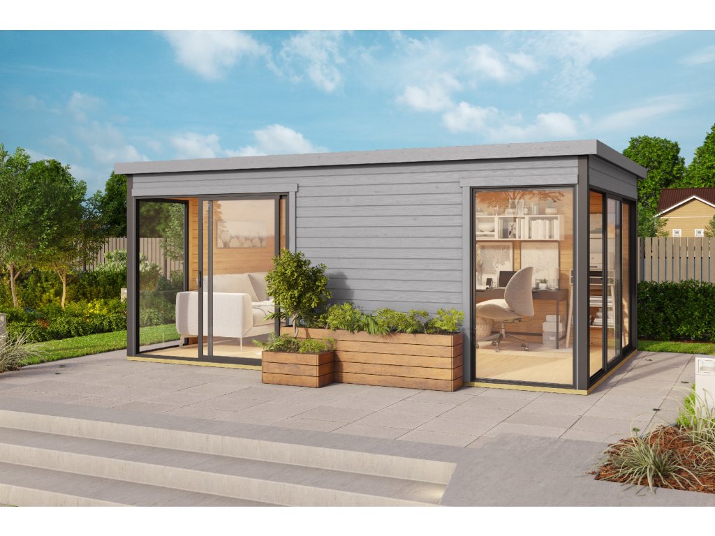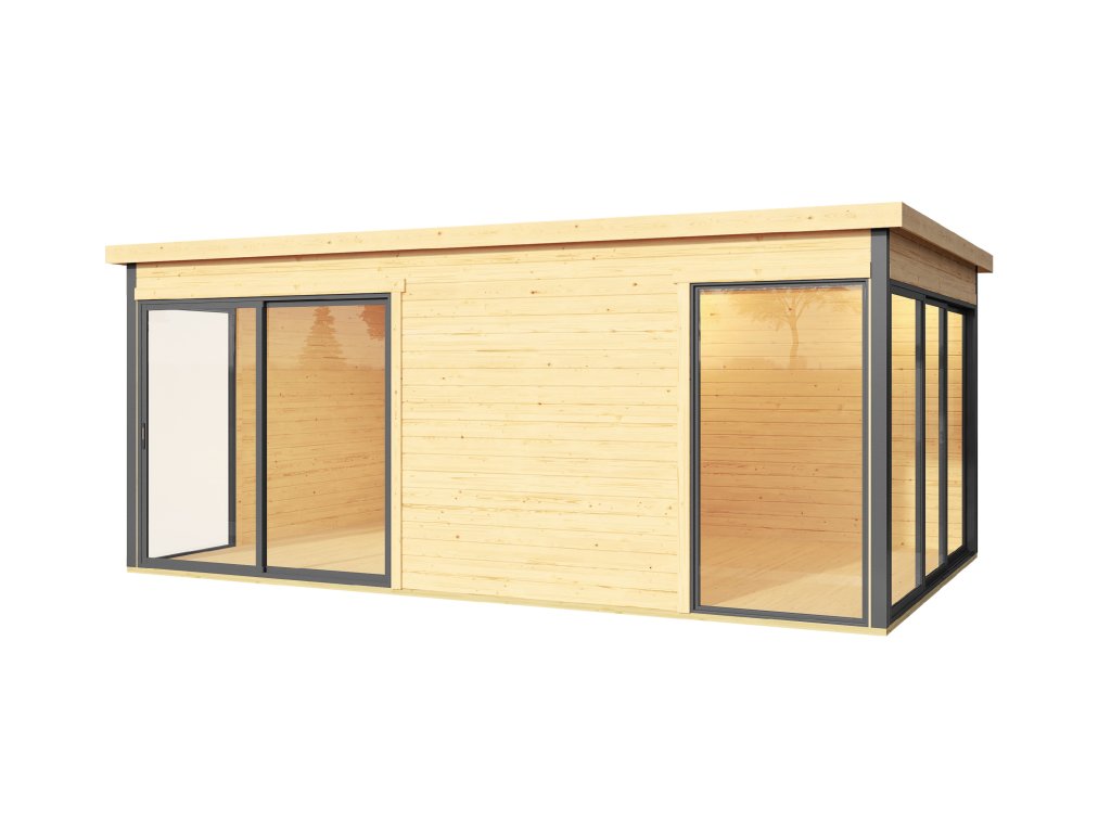 Dřevěný zahradní domek Domeo 3, s hliníkovými rámy, 509 x 322 cm, 44 mm