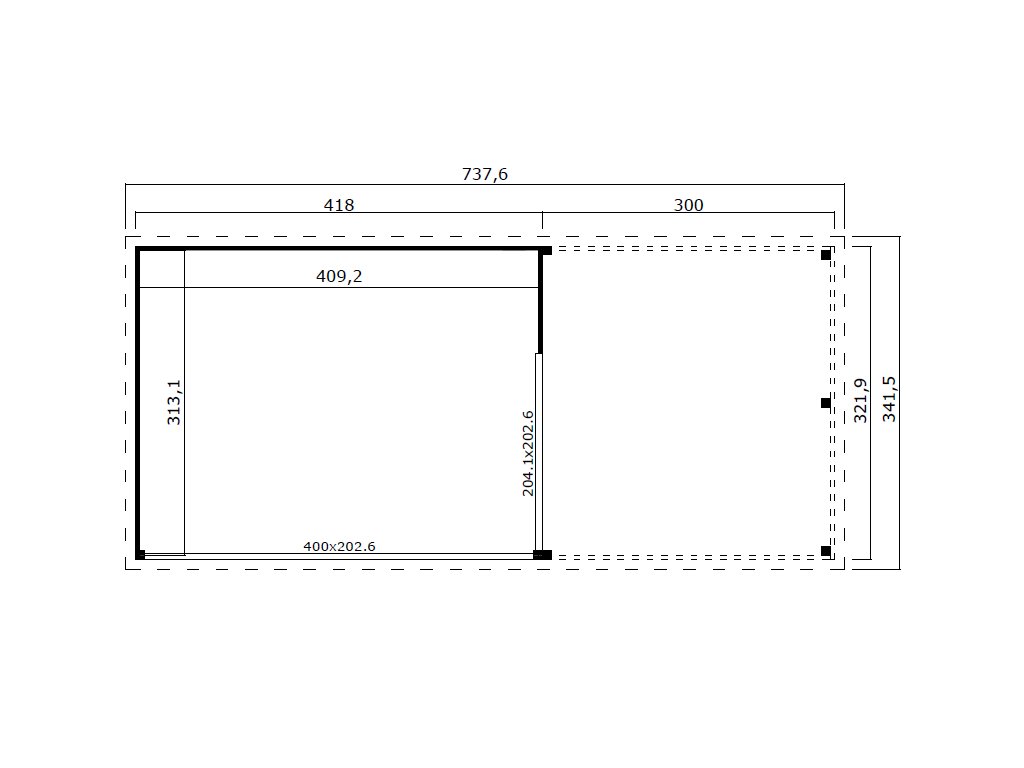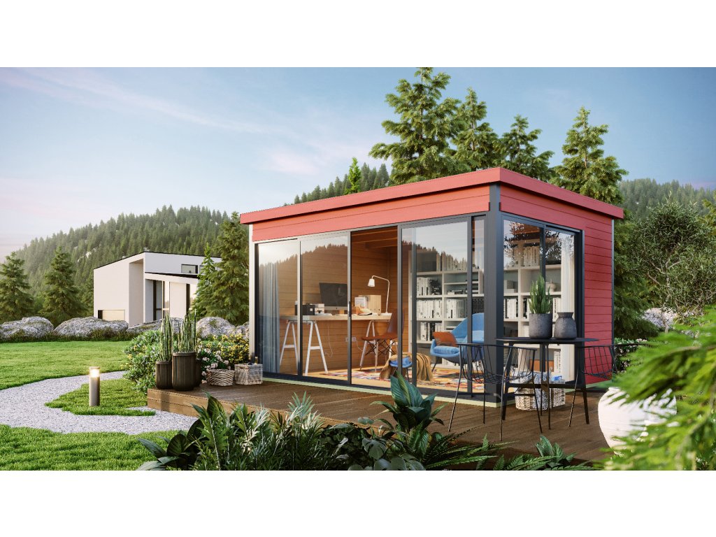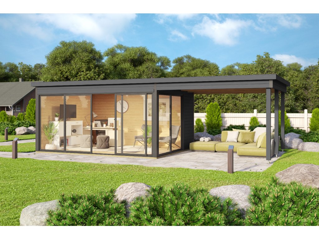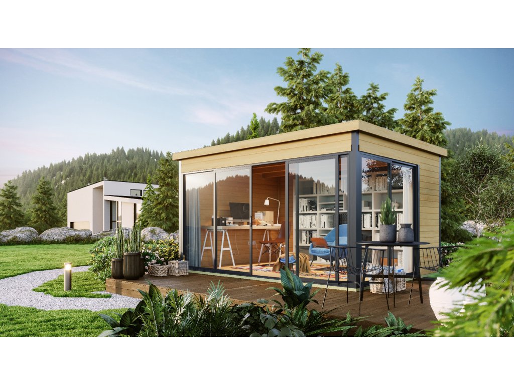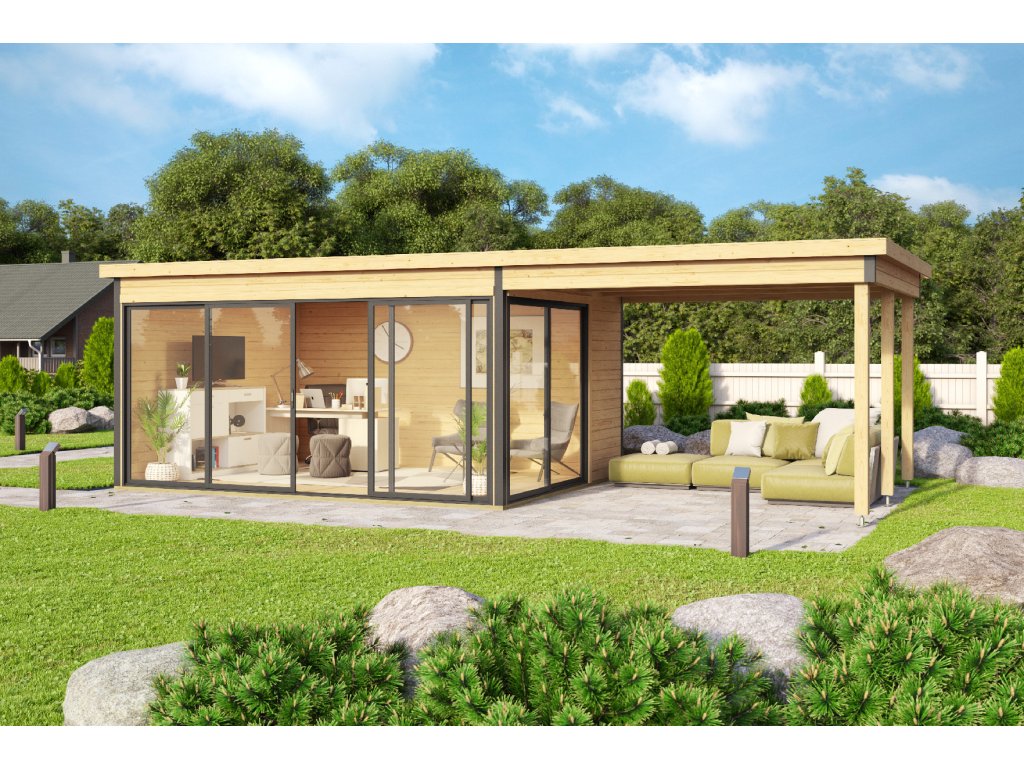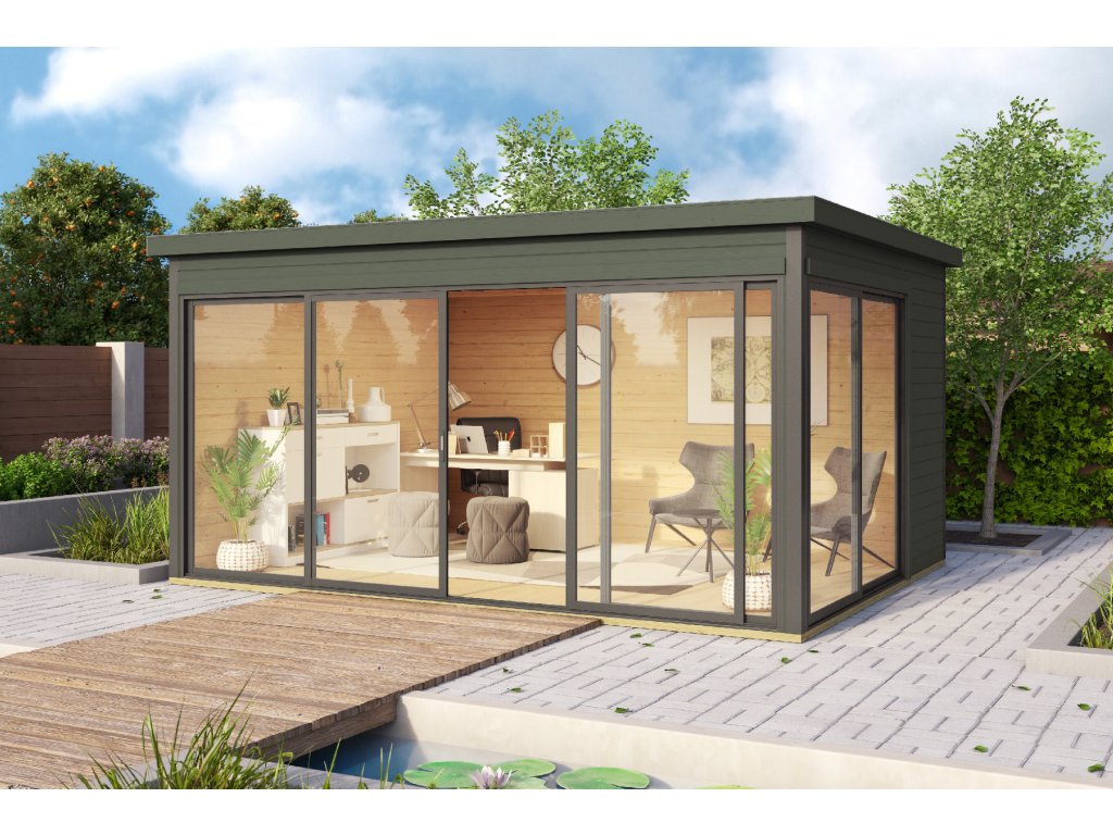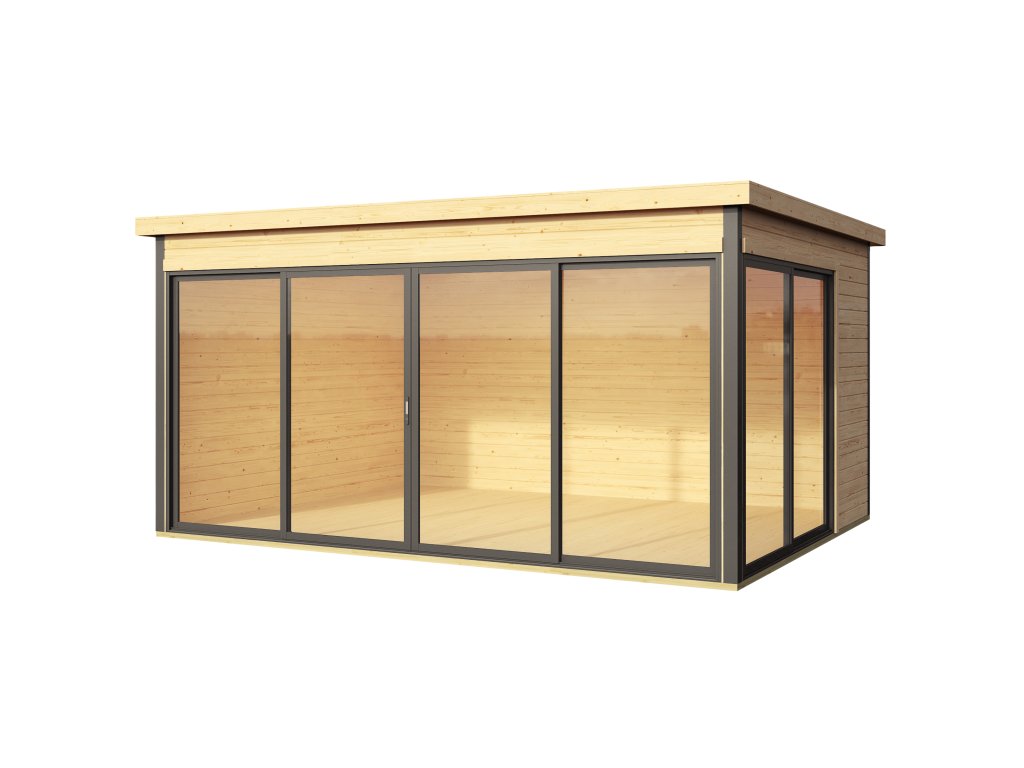 Dřevěný zahradní domek Domeo 4, s hliníkovými rámy, 418 x 322 cm, 44 mm