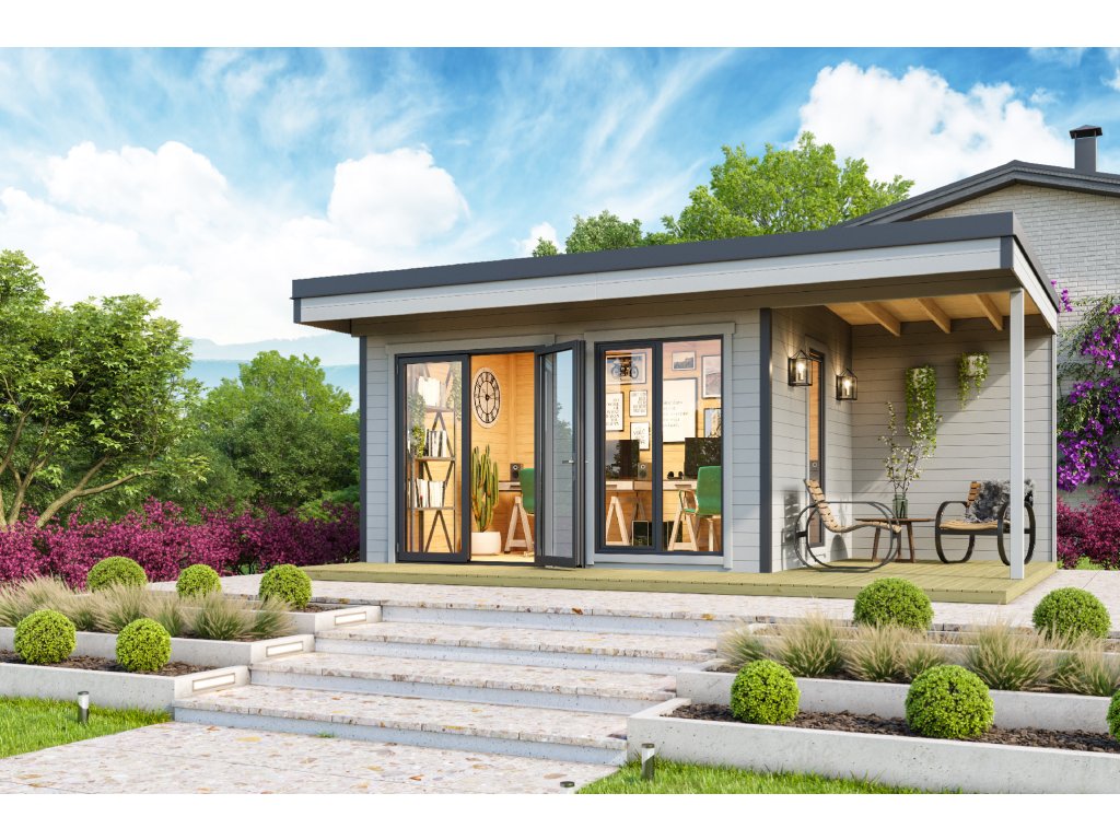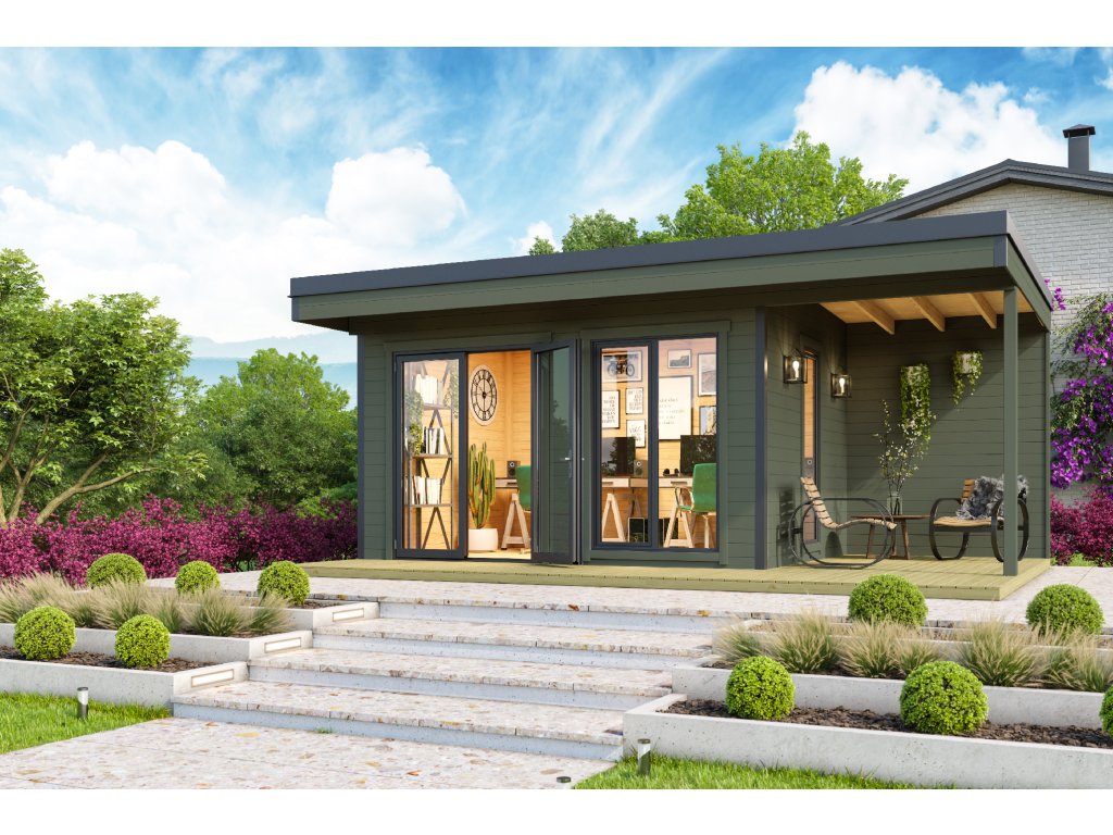 Dřevěný zahradní domek Domeo 7, s hliníkovými rámy, 400 x 300 cm, 44 mm