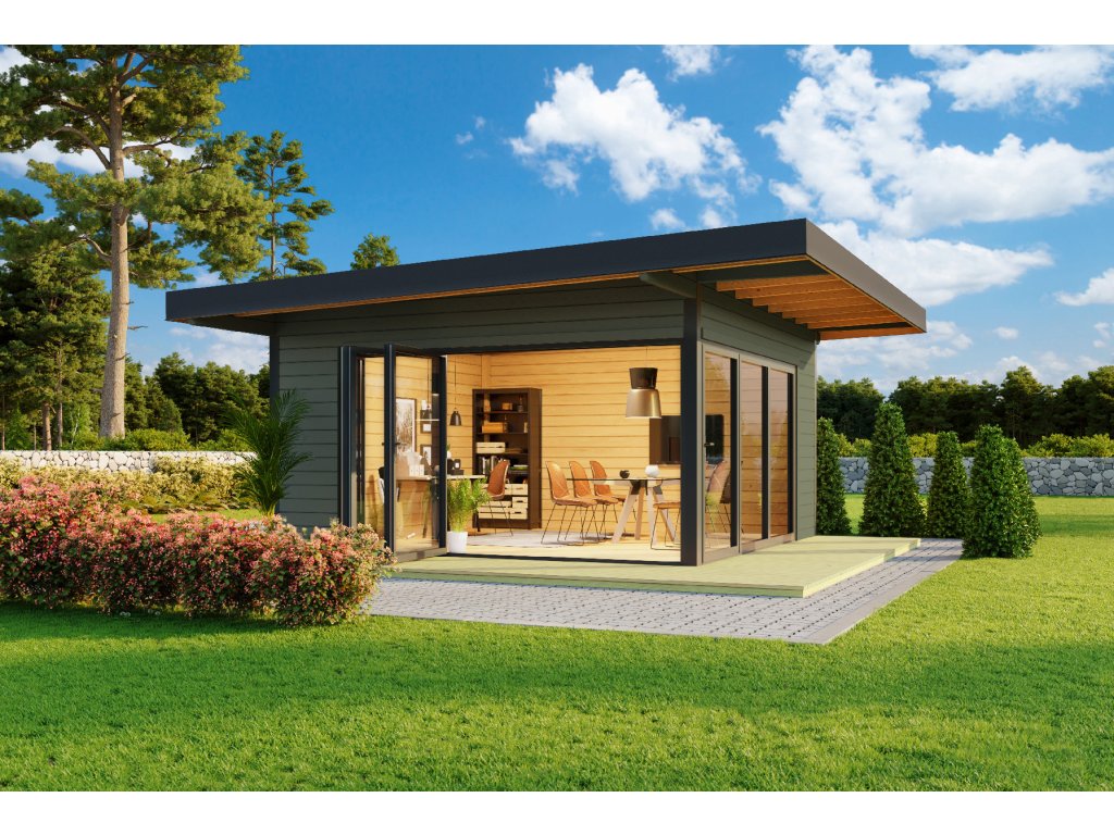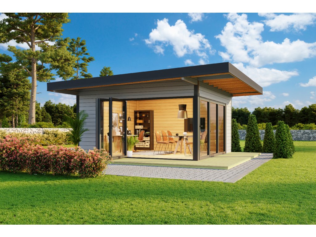 Dřevěný zahradní domek Domeo 9, s hliníkovými rámy, 450 x 450 cm, 70 mm