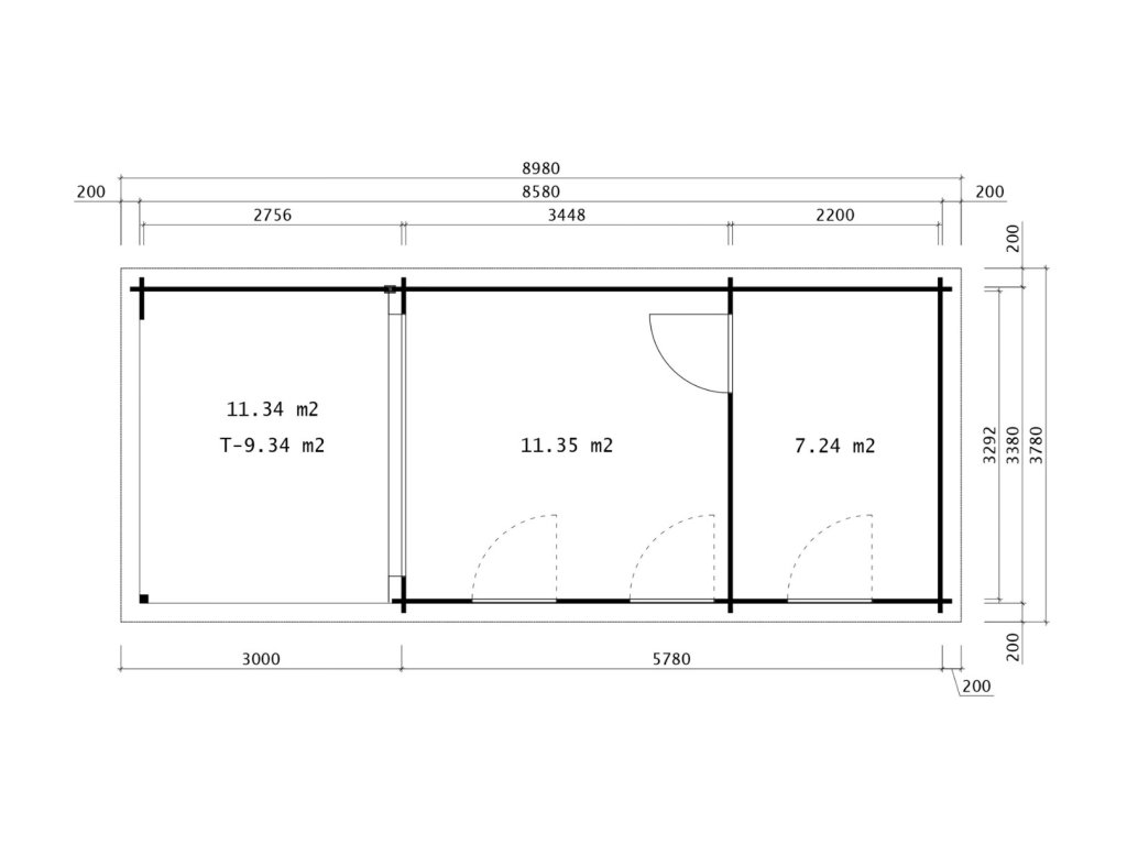Dveře: 1× 840 × 1965 mm, jednokřídlé, dvojité sklo/