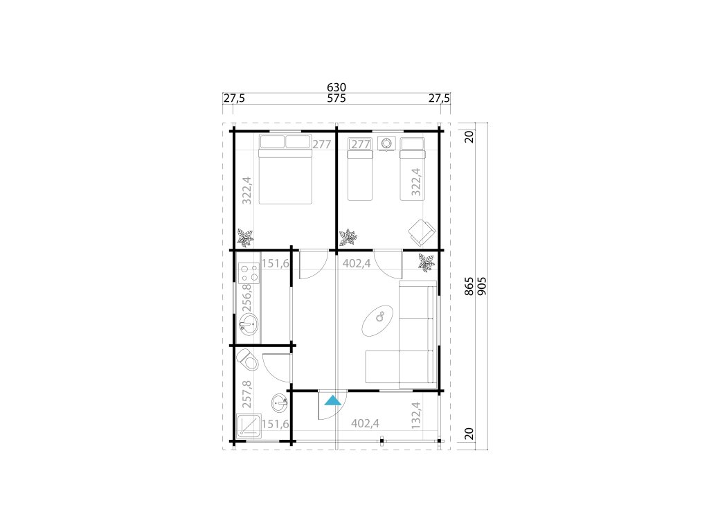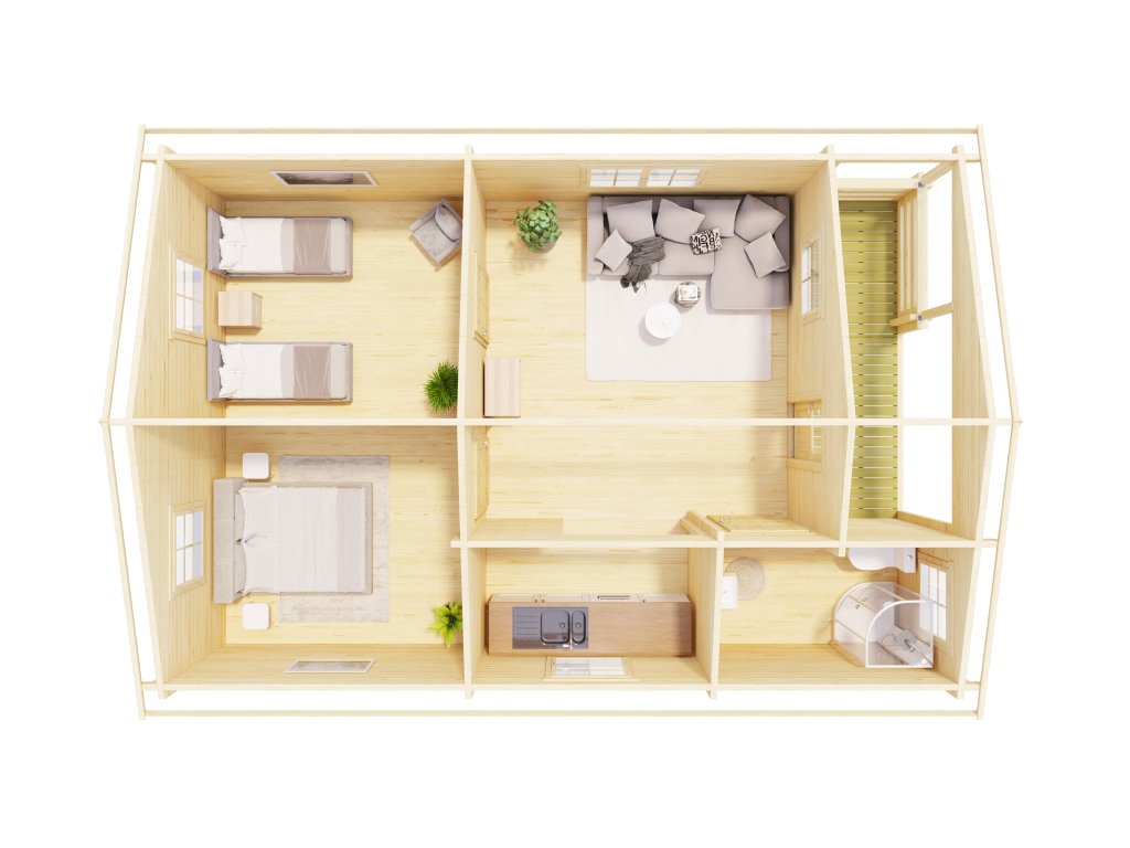Dřevěný zahradní domek Kasai B 70, 5 místností, 575 x 865 cm, 70 mm