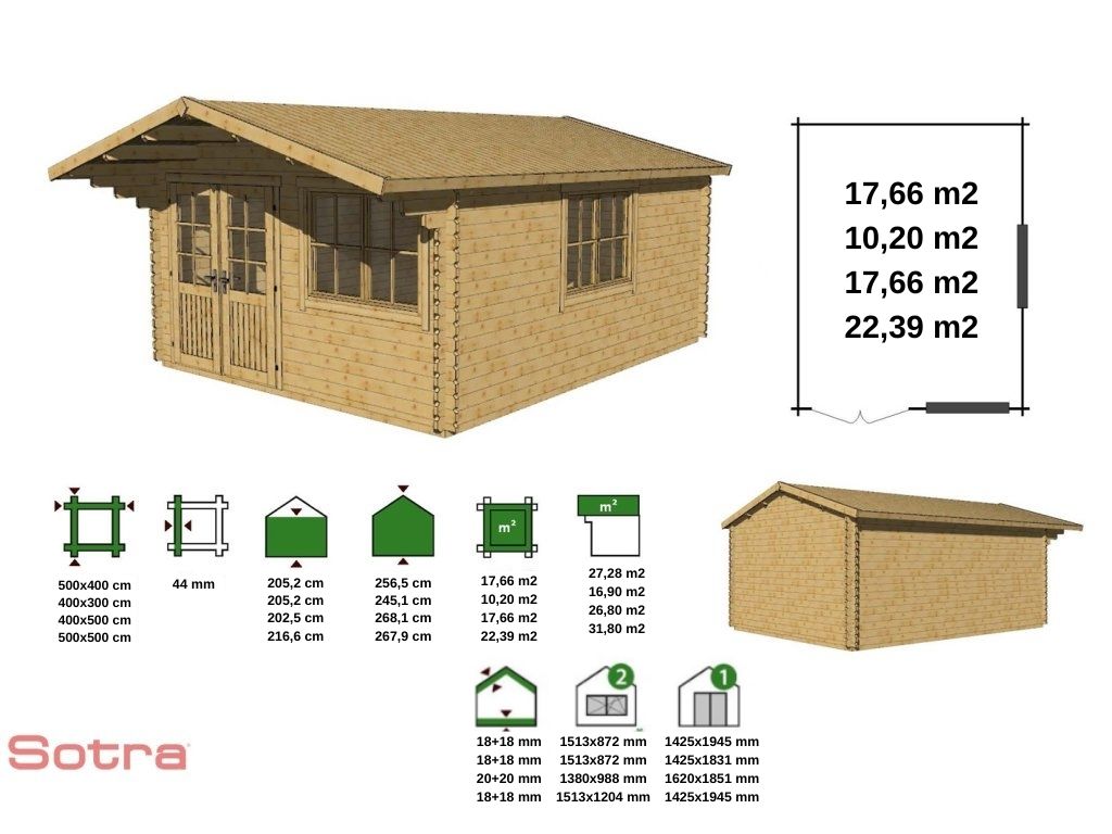 Dřevěný zahradní domek LILLIAN 44 500 x 400 / 400 x 300 / 500 x 500 cm, 44 mm