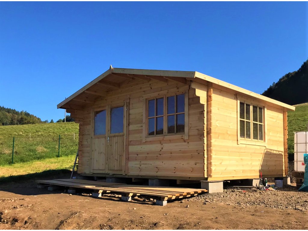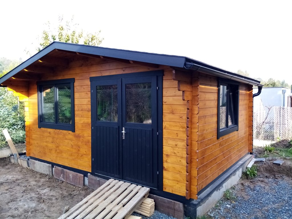 Zahradní domek má přírodní barvu bez jakékoliv povrchové úpravy a je připraven k dalším nátěrům a impregnacím.