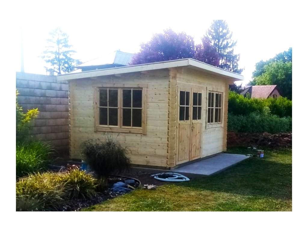 Lillian TP to je kvalitní roubený zahradní domek s plochou střechou vhodný na každou zahradu se širokými poloprosklenými dveřmi a okny - je tedy pěknou dekorací zahrady. Díky oknům v něm navíc bude dostatečné světlo.