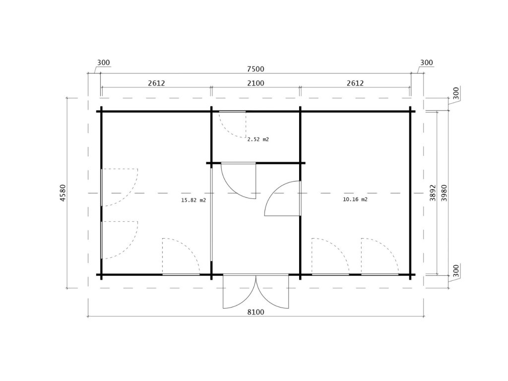 Dřevěný zahradní domek Lucca, 750 x 398 cm, 44 mm