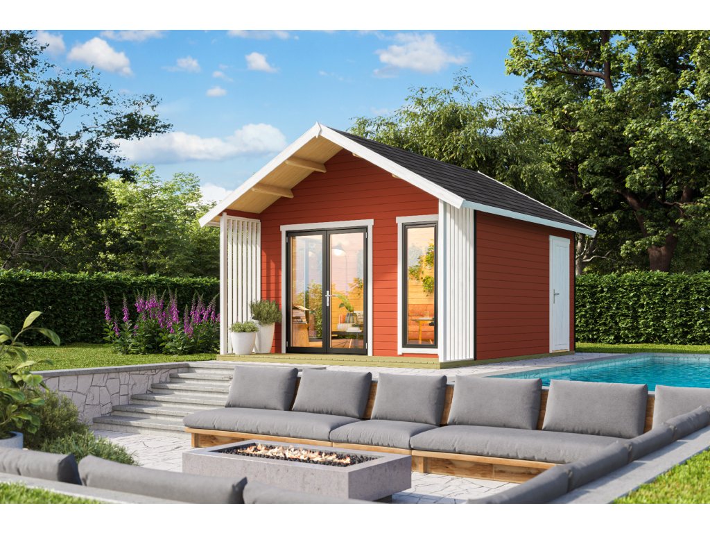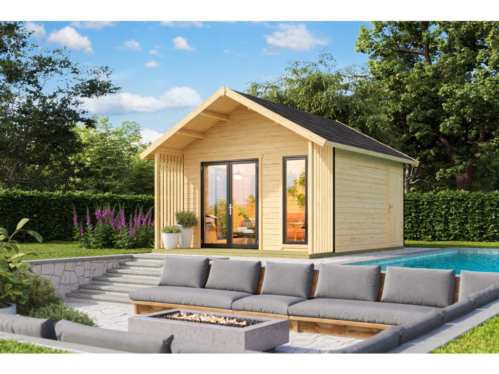 Dřevěný zahradní domek Murano 1, s hliníkovými rámy, 390 x 410 cm, 44 mm