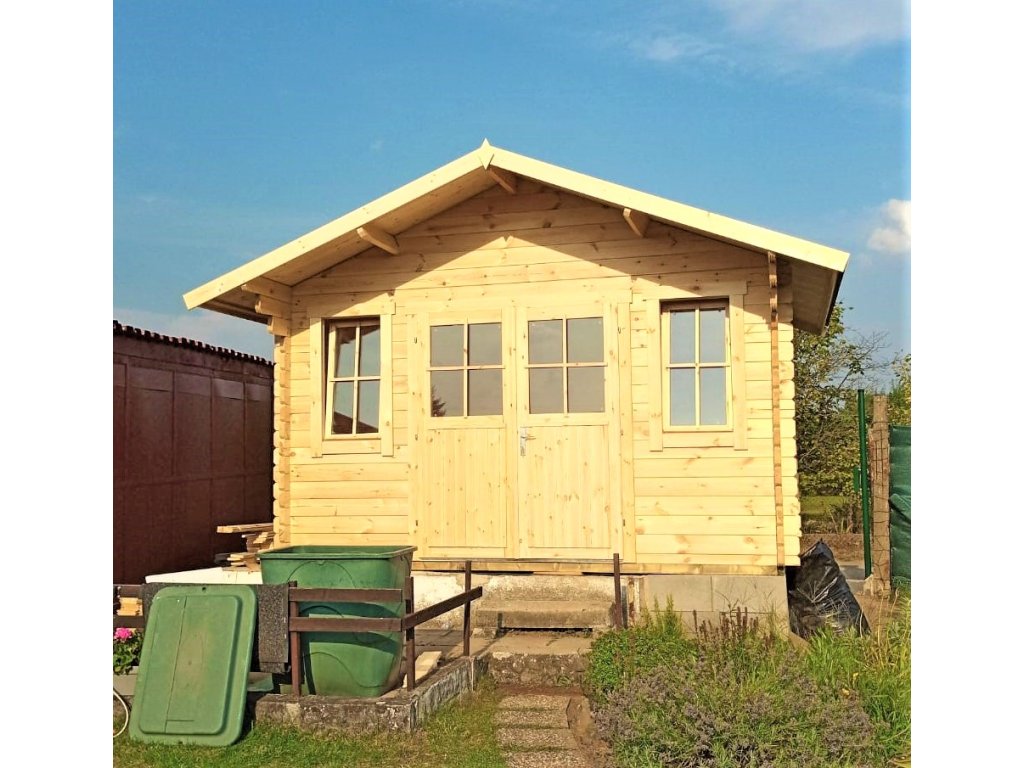 Olymp, to je kvalitní roubený zahradní domek vhodný na každou zahradu. Tloušťka stěny 44 mm zajišťuje lepší izolovanost a pevnost oproti tenčím modelům. Dvě velká okna působí nejen vzdušně, ale zároveň pouští do interiéru hodně světla. Vnější rozměry činí 400 x 300 cm, výška hřebene je 305,7 cm. Strop je v nejnižším místě vysoký 208,1 cm.