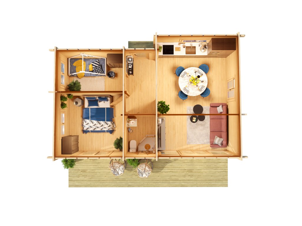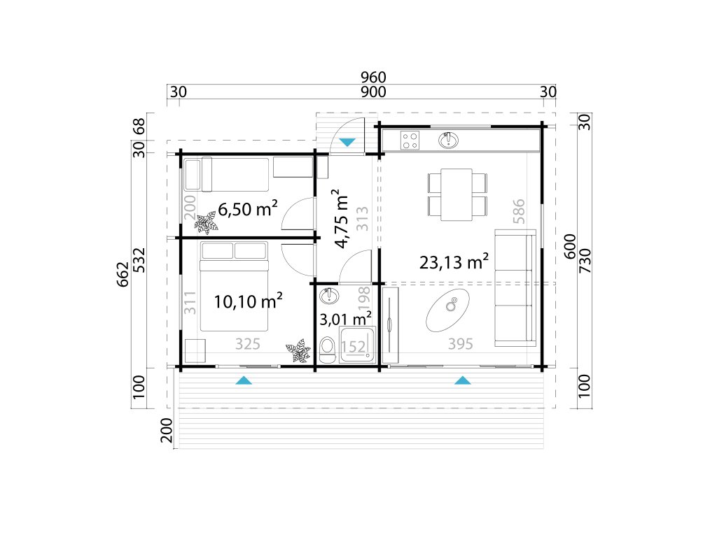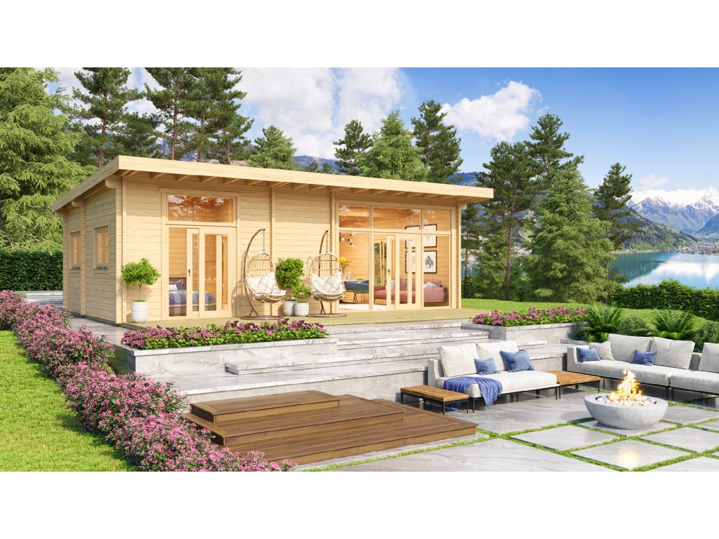 Dřevěný zahradní domek Östersund 70, 4 místností, 900 x 600 cm, 70 mm
