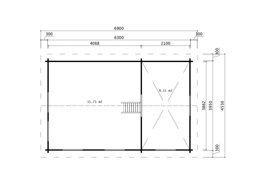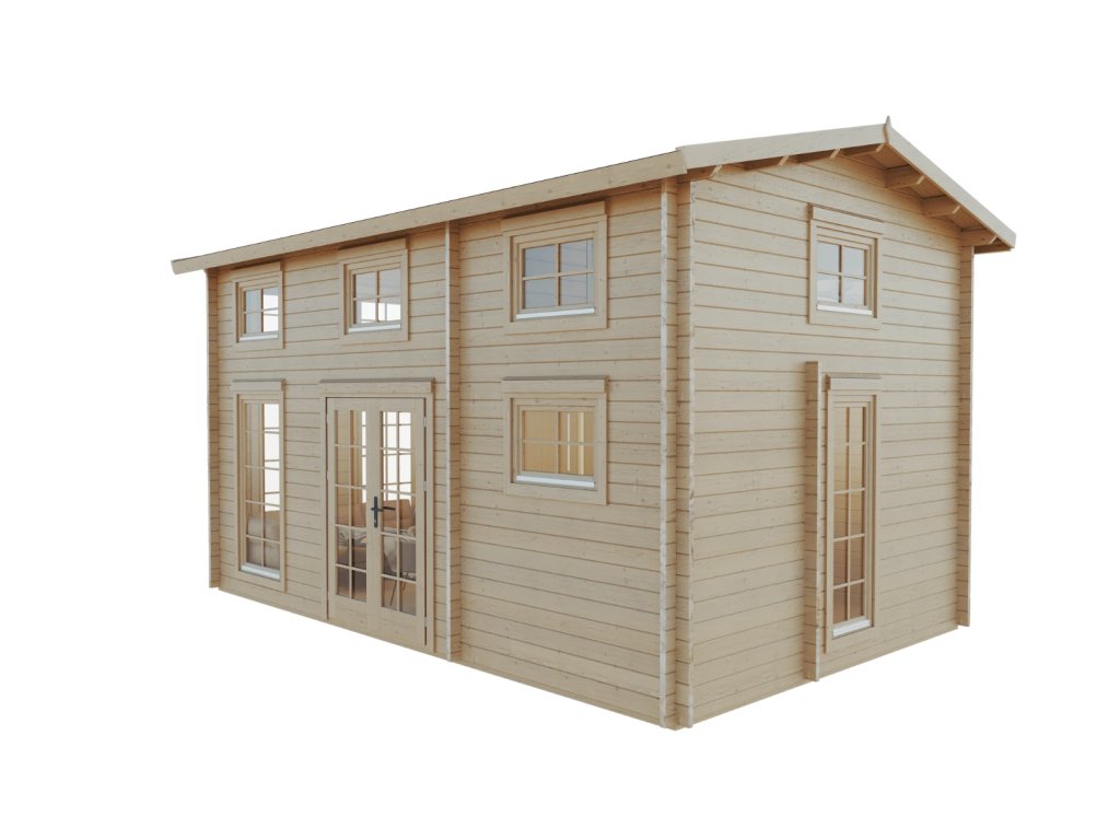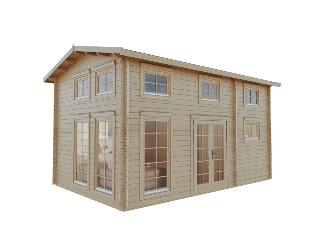 Dřevěný zahradní domek s patrem na spaní Loma 2, 395 x 630 cm, 44 mm
