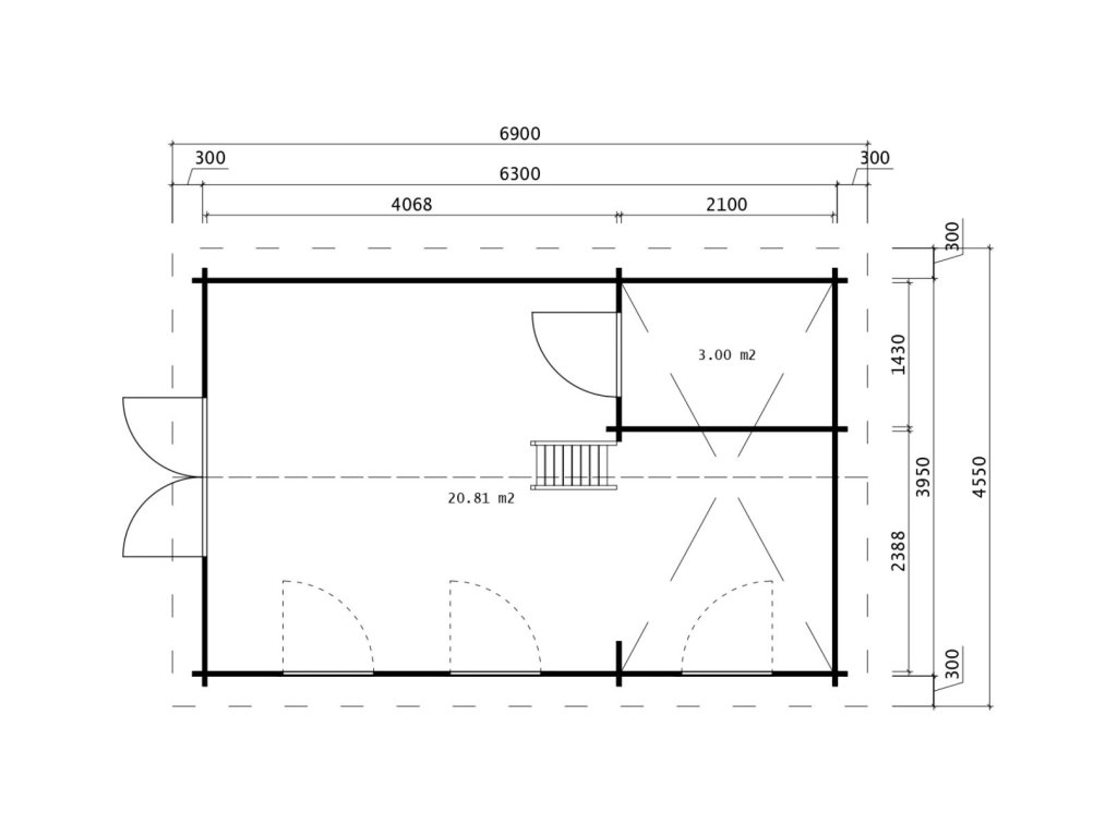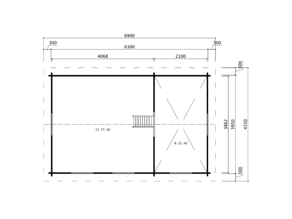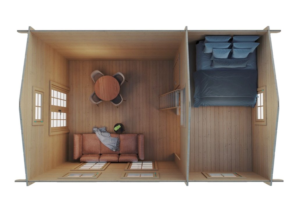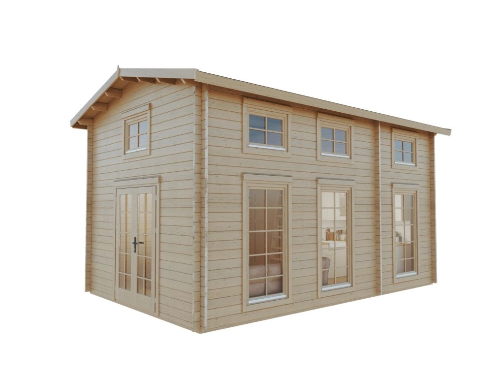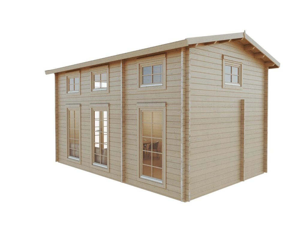 Dřevěný zahradní domek s patrem na spaní Loma 4, 395 x 630 cm, 44 mm
