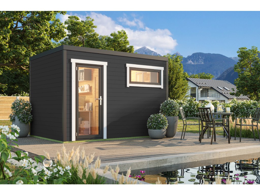 Dřevěný zahradní domek Sardinia 2, s hliníkovými rámy, 350 x 250 cm, 44 mm