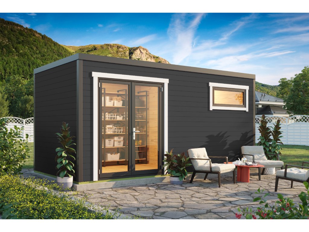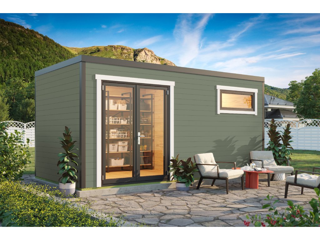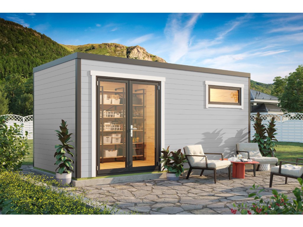 Dřevěný zahradní domek Sardinia 3, s hliníkovými rámy, 500 x 250 cm, 44 mm