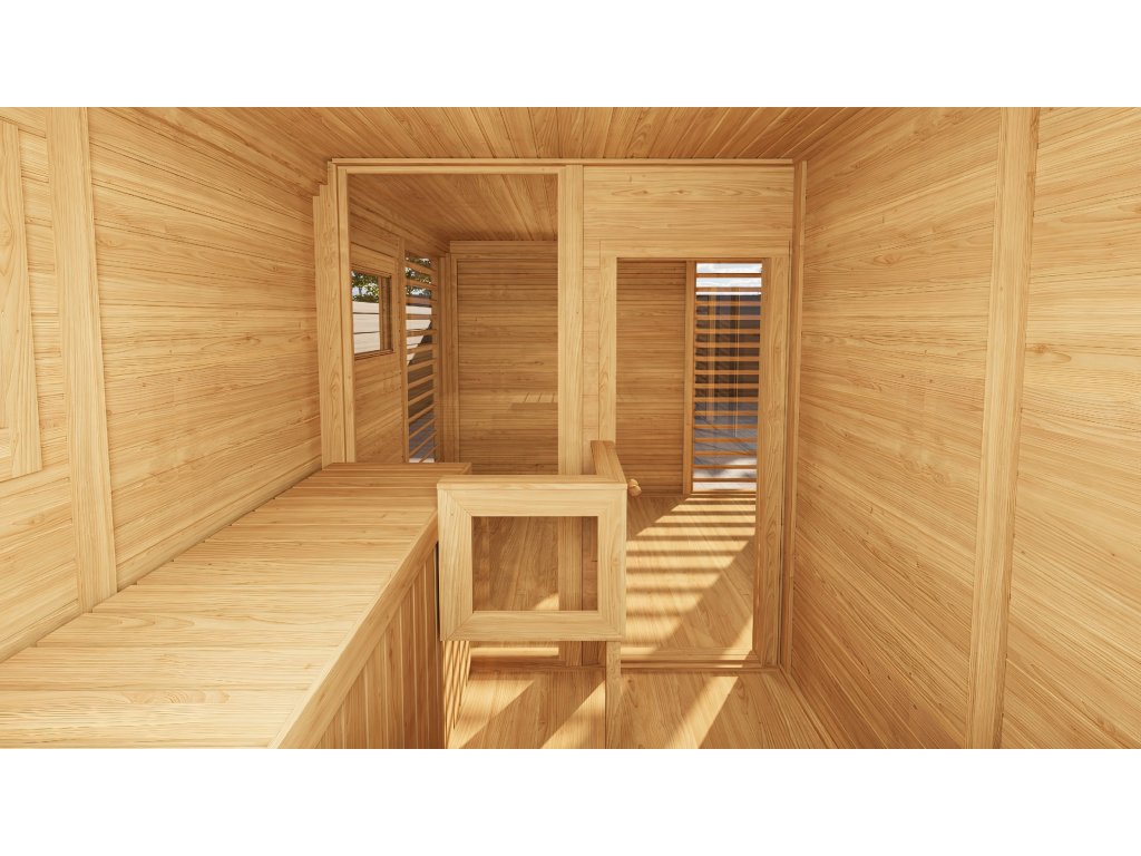 Finská izolovaná sauna SCANDI MAGNUM, 3 místnosti 4,3x3,3 m, 80 mm, smrk