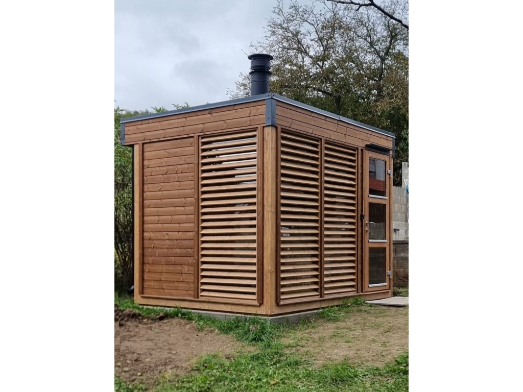- saunová kamna elektrická nebo kamna na dřevo (možnost výběru ⇒ zde)
