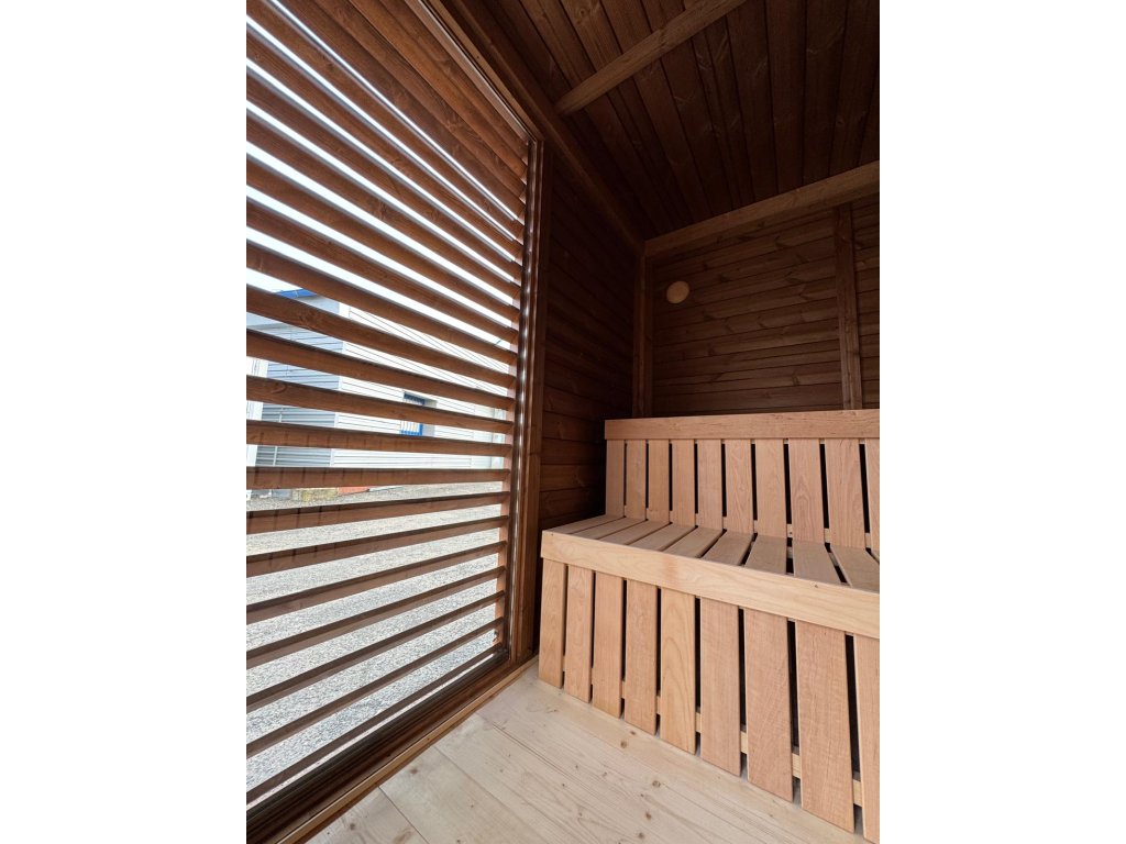 Finská izolovaná sauna ThermoWOOD SCANDI EXTRA, 2 místnosti, 4,3x2,3 m, 80 mm