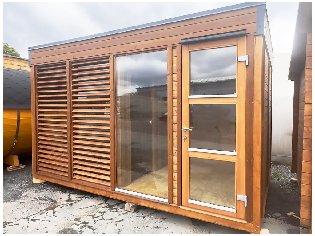 Při konstrukci je kladen důraz na vysokou kvalitu: izolované střešní prvky, izolované stěnové panely, obvodové lepené dřevěné trámy, izolační skleněné dveře atd. jsou charakteristické znaky kvalitního zpracování. Díky saunové izolaci vytopíte saunu podstatně rychleji, na výrazně vyšší teplotu, nebude ztrácet teplo. Užijte si relaxační wellness časy ve své zahradní sauně SCANDI TWIN.
