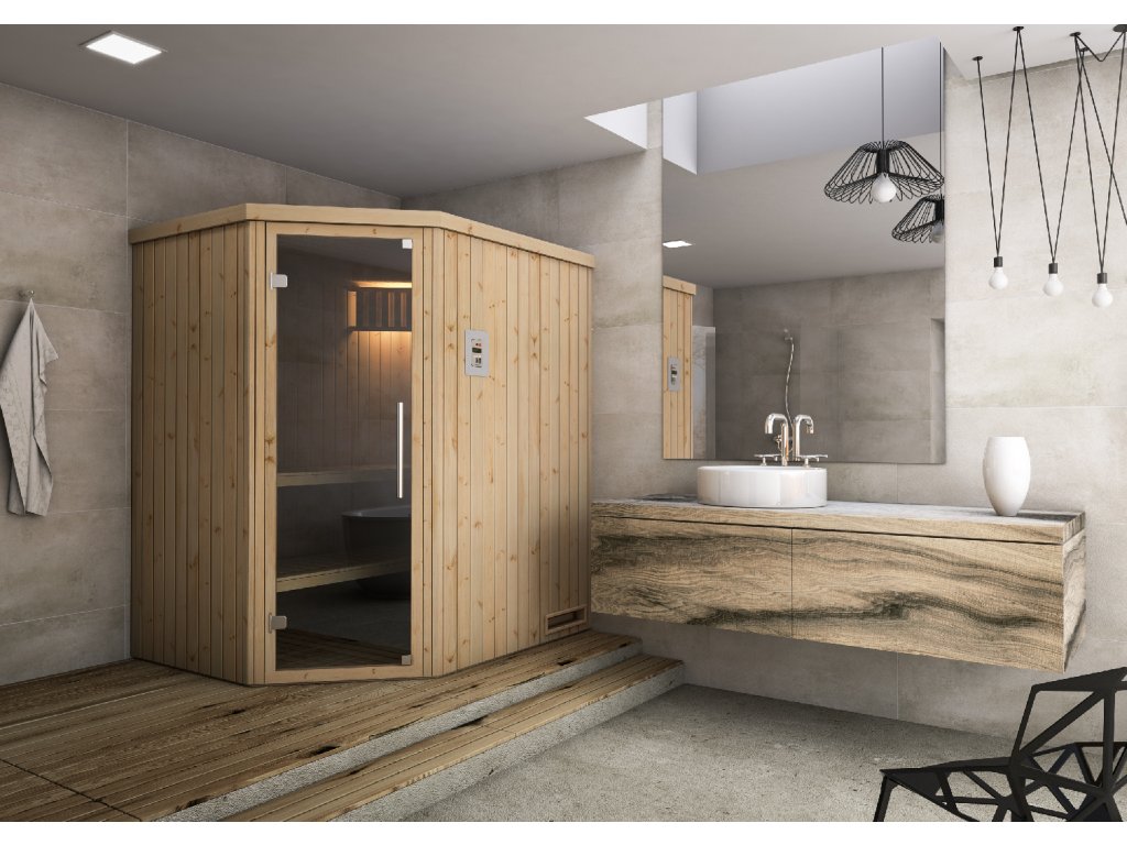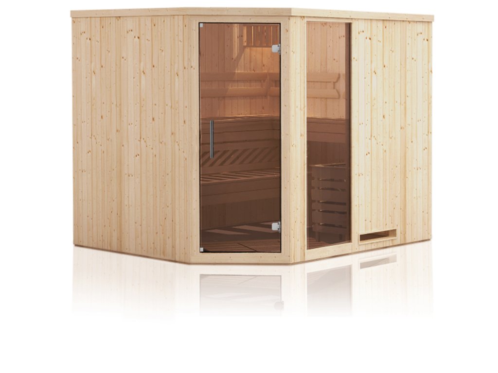 Vnitřní sauna se hodí téměř do každého interiéru - váš domov přetvoří na zónu relaxace a odpočinku. Rohové sauny se umísťují do menších prostor, kde je zásadní úspora místa. Do sauny se vstupuje skleněnými dveřmi prakticky zasazenými do seříznutého rohu. Klasický design s moderními detaily splní očekávání nejnáročnějších zákazníků.