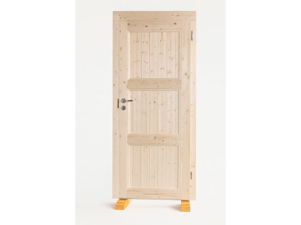 Dřevěné dveře jsou vyrobeny ze severského smrku. Dveře jsou určeny k instalaci do předem připravených otvorů. Vhodné pro různé typy staveb s možností vlastního povrchového dokončení. Orientace dveří je pravá. Přírodní dřevěný vzhled dodává interiéru útulnou atmosféru.