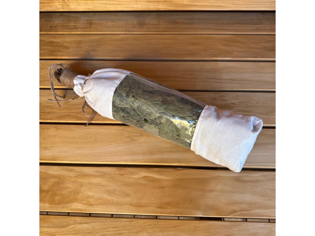 Tato saunová metlička je zabalena ve lněném sáčku. Před použitím je nutné ji i se sáčkem namočit. Skvělý tip na dárek!