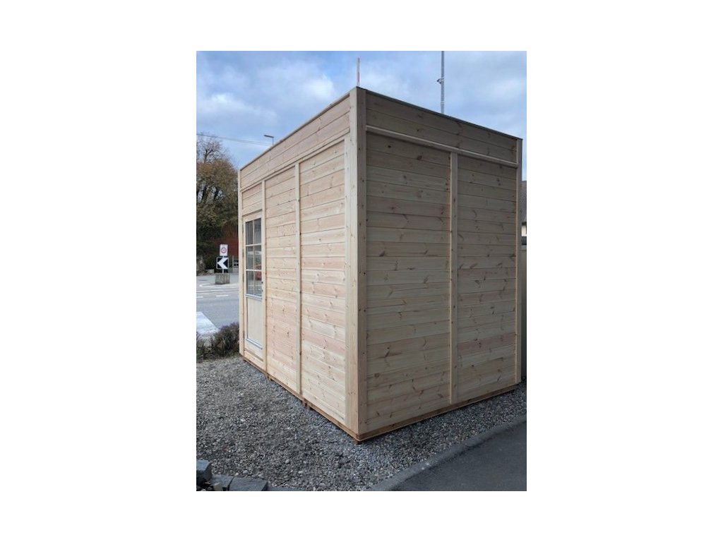 Zahradní domek má přírodní barvu bez jakékoliv povrchové úpravy a je připraven k dalším nátěrům a impregnacím. Dodáváme jako stavebnici v rozloženém stavu. Součástí dodávky je kompletní kování a podlaha, okna i dveře jsou vyplněny dvojsklem.