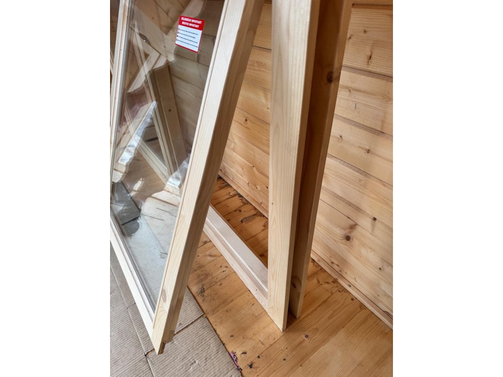Okno je vyrobeno z přírodního smrkového dřeva a osazeno izolačním dvojsklem. Konstrukce je jednoduchá a funkční, vhodná pro nenáročné použití. Okno je dodáváno bez povrchové úpravy, připravené k dalším nátěrům dle potřeby.