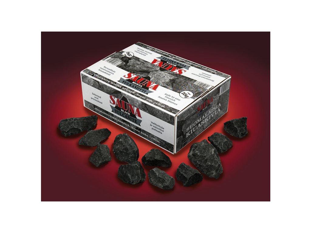 Tradiční černý přírodní kámen vulkanit je vhodný pro všechna saunová kamna a má vynikající vlastnosti saunových kamenů. Tyto kameny dokonale vytvářejí měkké a vlhké teplo.