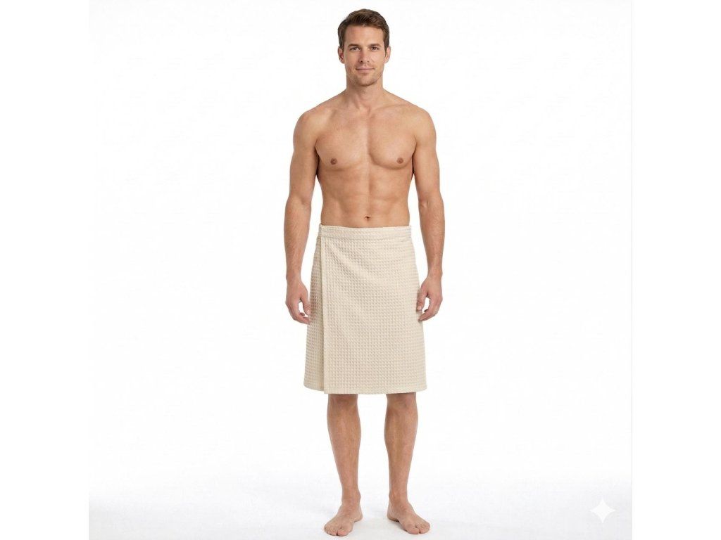 Pánský vaflový saunový kilt pro wellness a spa, 57 x 145 cm, 100% bavlna krémová