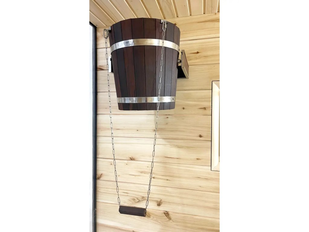 Použití je velmi jednoduché. Po připojení na přívod vody (1/2") se polévací vědro do sauny automaticky naplní. Následně stačí jediný pohyb za lano – vědro se převrátí a chladná voda vytvoří silný kontrastní účinek, který zakončí vaše saunování osvěžujícím způsobem.