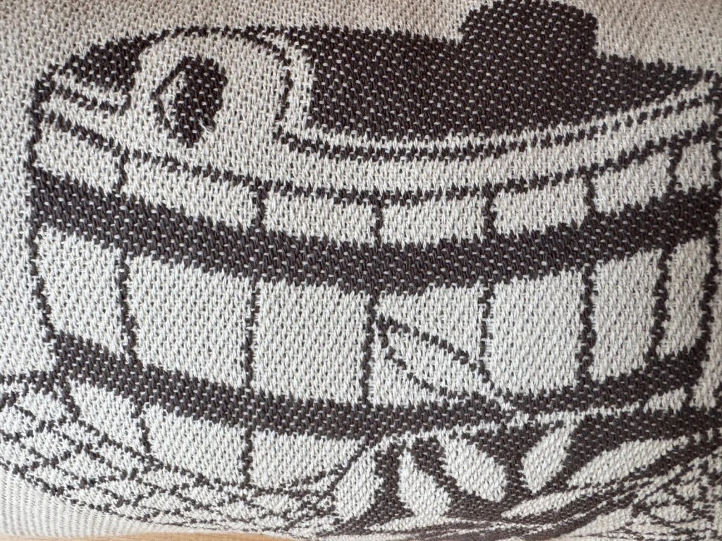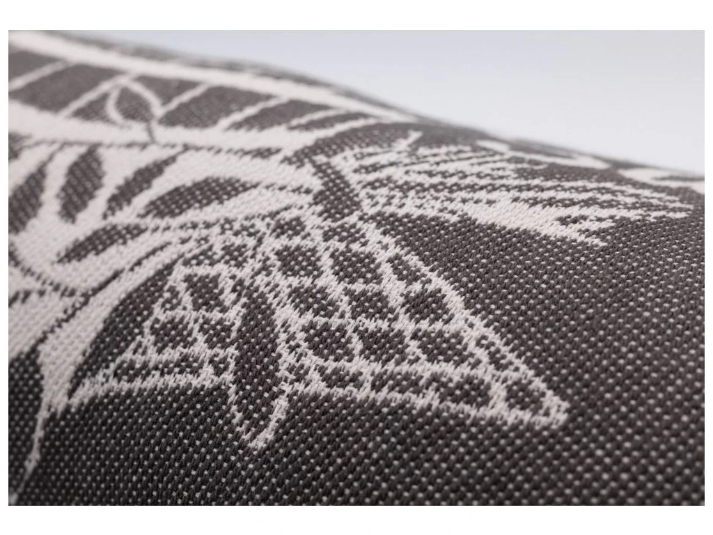 Rozměr bavlněného polštářku do sauny je 50 × 22 cm. Motiv je oboustranný – každá strana má jiný odstín (šedý a krémový, viz foto).