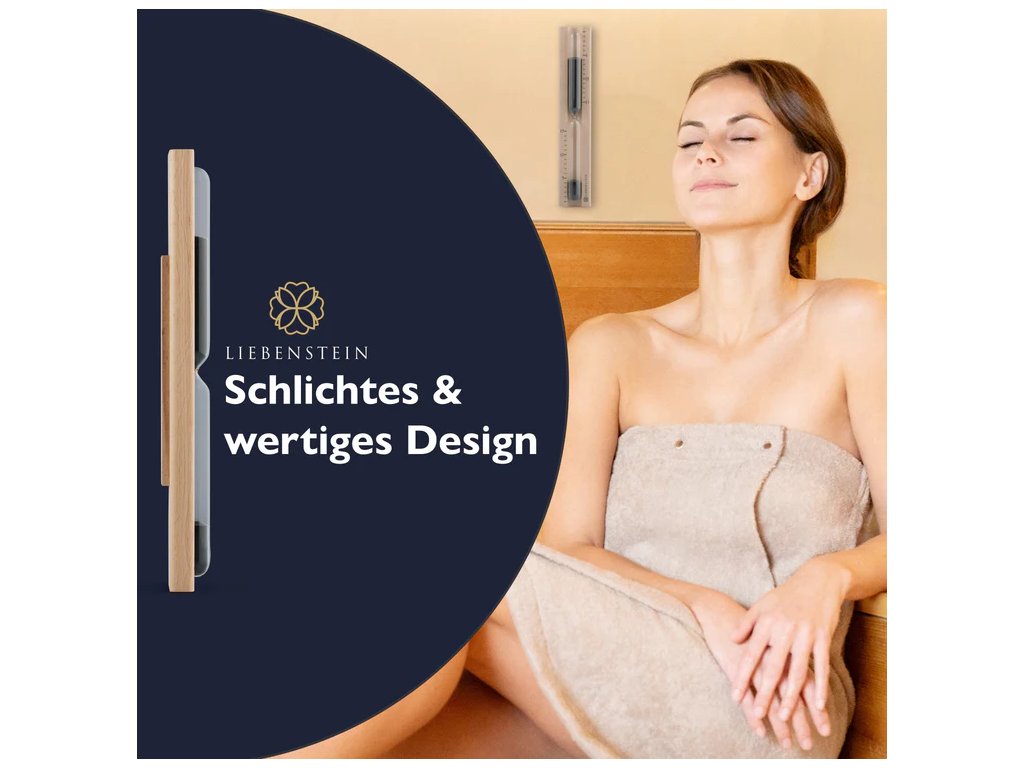 Liebenstein saunové přesýpací hodiny jsou vyráběny jako řemeslný produkt v Německu podle přísných kvalitativních kritérií. Saunové hodiny jsou vyrobeny z prvotřídního bukového dřeva a vyznačují se vysokou odolností vůči teplotním extrémům.