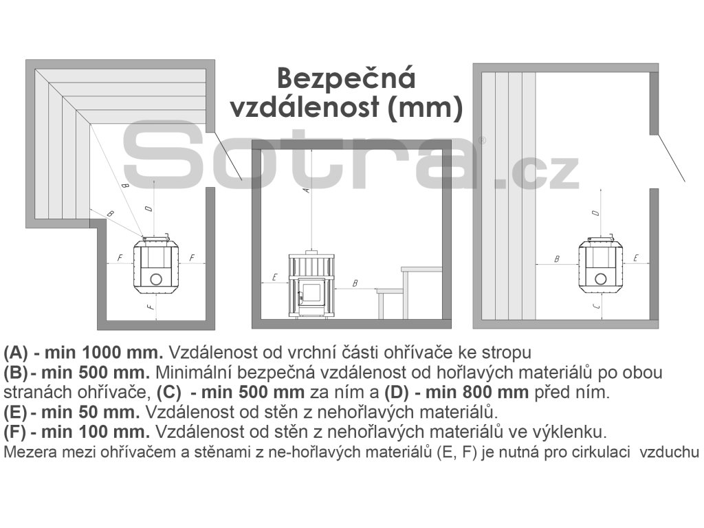 Hmotnost kamenů 30-40 kg. Množství saunových kamenů může být individuálně odlišné v závislosti na frakci a hustotě uložení kamenů. (nejsou součástí dodávky) -