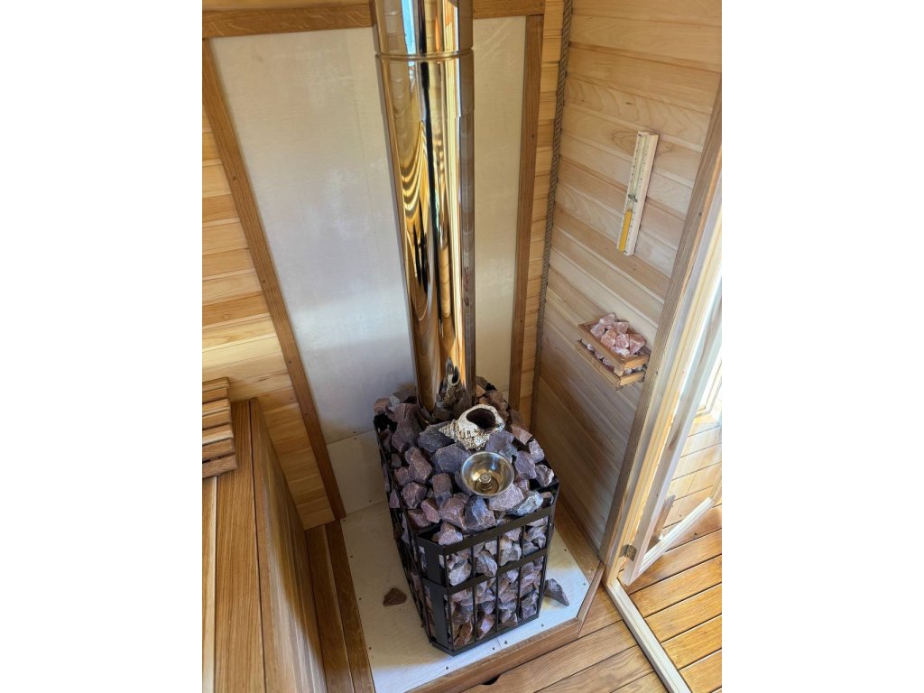 – hmotnost kamenů 100-120 kg. Množství saunových kamenů může být individuálně odlišné v závislosti na frakci a hustotě uložení kamenů. (nejsou součástí dodávky)