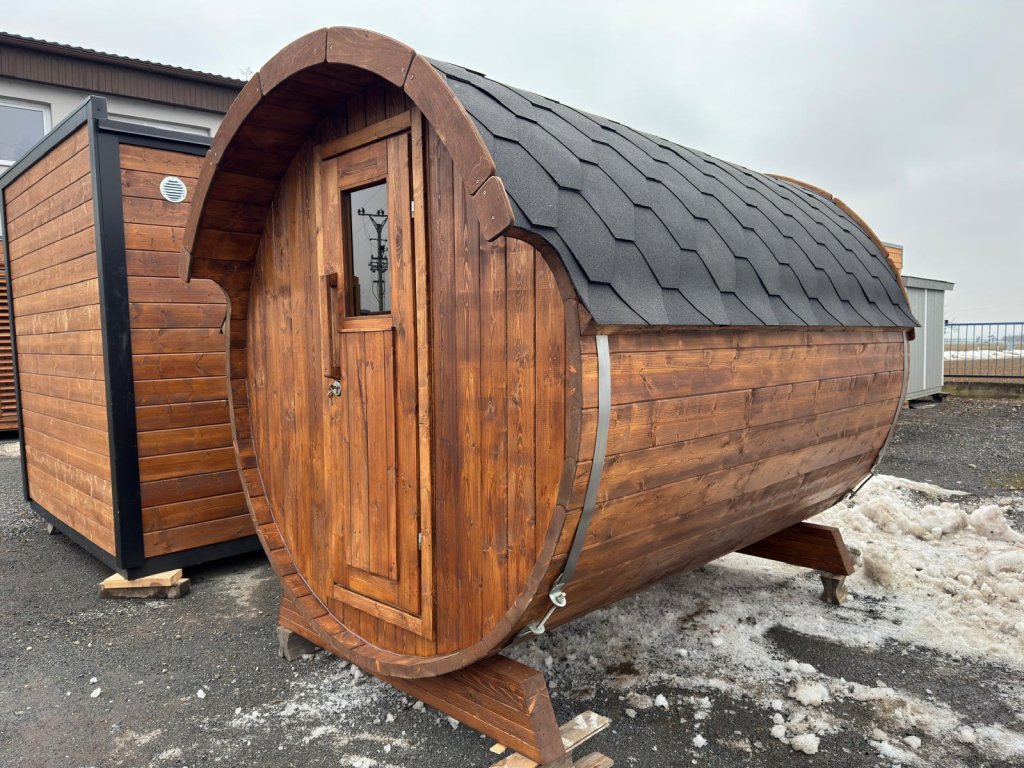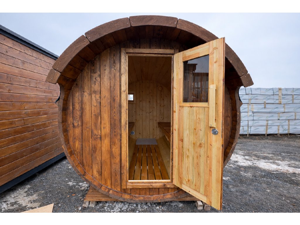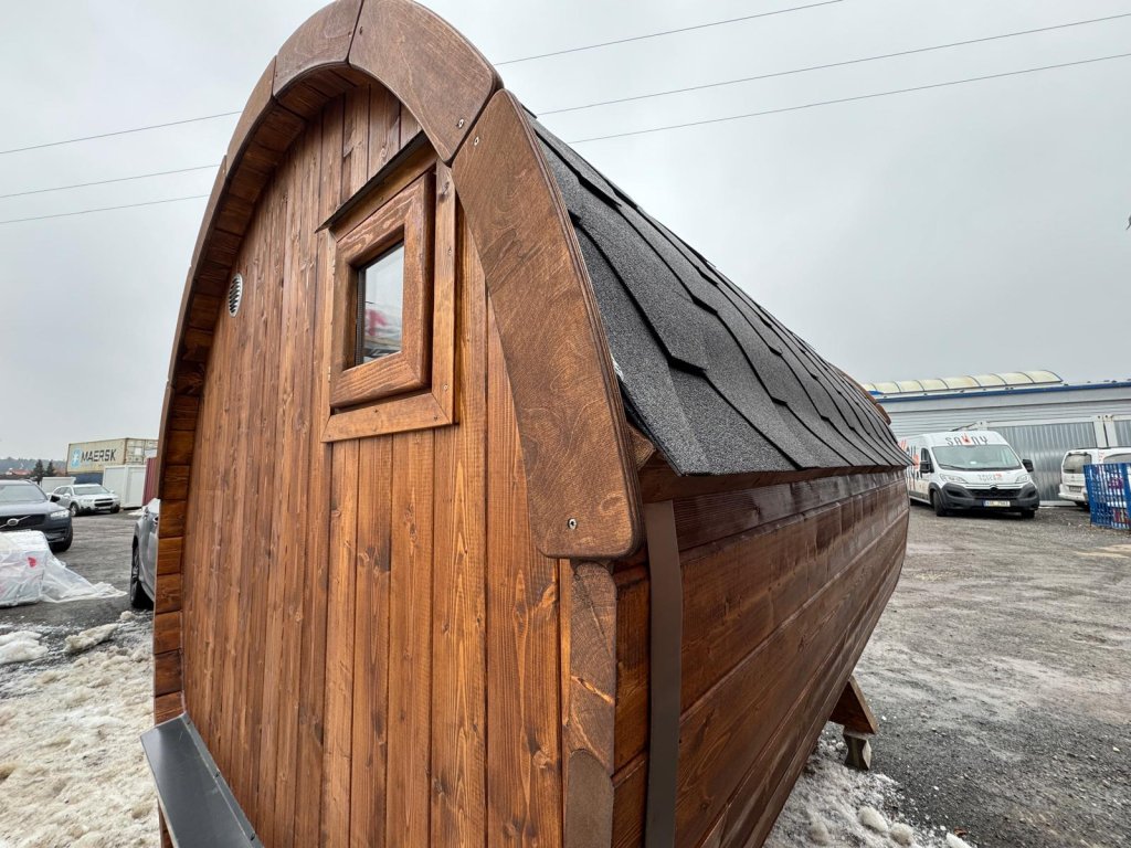 1. Korpus sauny: celková délka 2,8 m, průměr 2,05 m, sauna 2,4 m.