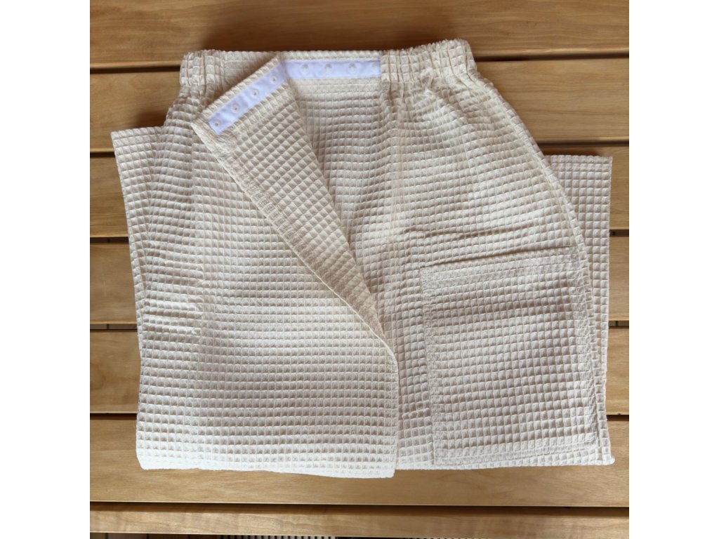 Stylový a praktický saunový kilt z kvalitní vaflové tkaniny pro ženy i muže. Díky univerzálnímu střihu je vhodný pro obě pohlaví. Vaflový materiál je ideální pro použití v sauně. Saunový kilt UNISEX SOTRA je lehoučký, měkký a velmi příjemný. Navíc skvěle saje vodu, pot a rychle usychá.