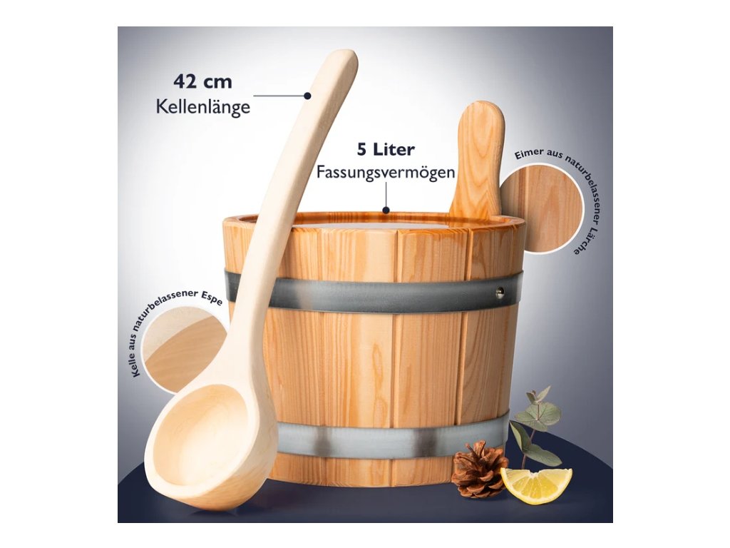 Vědro do sauny 5 l s dřevěnou naběračkou