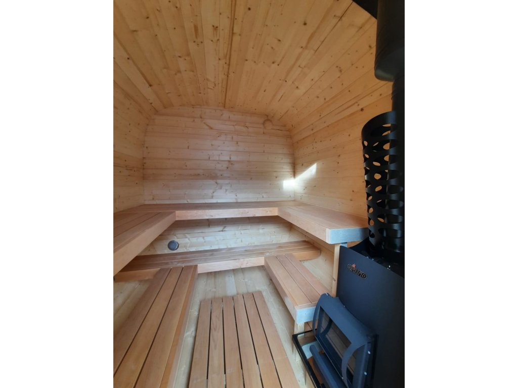 Sauna s jednou místností a unikátním designem je perfektní volbou pro milovníky saunování. Moderní a stylová sauna splňuje ta nejvyšší očekávání. Na terásce se příjemně sedí.