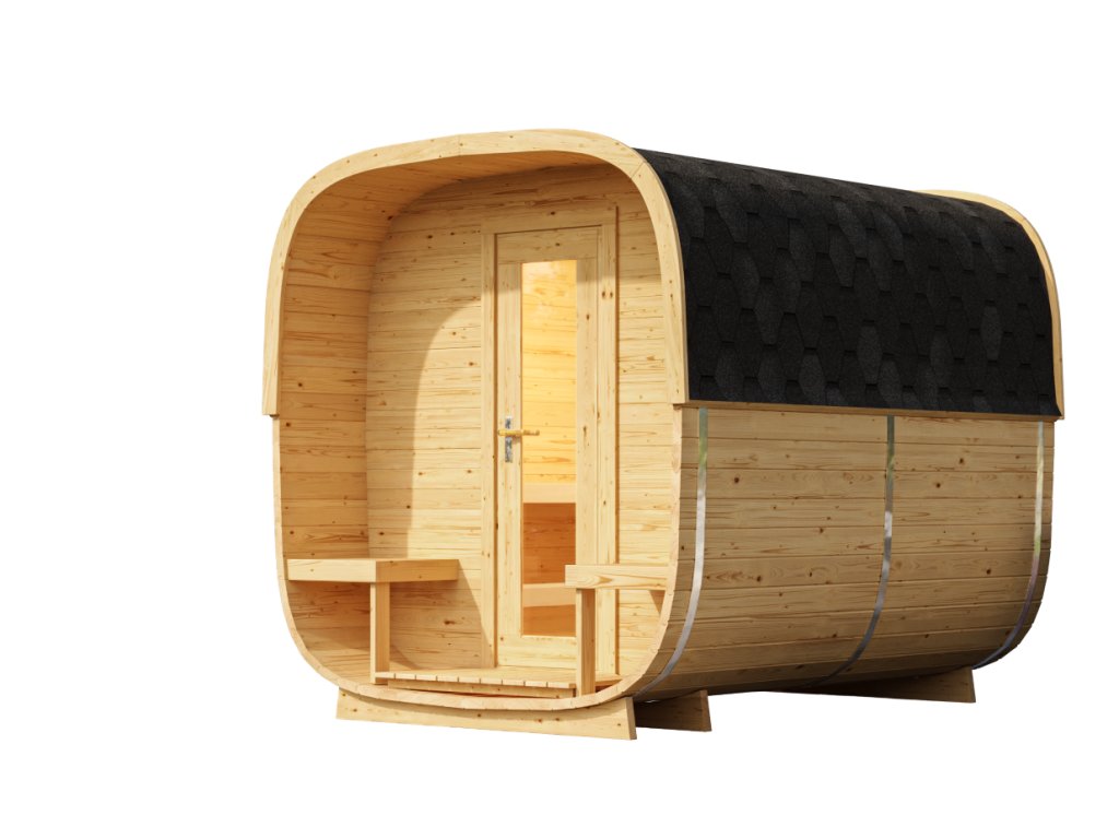 Venkovní sauna Nelio Standard 2,9x2,2 m, 42 mm, 1 místnost, terasa, smrk