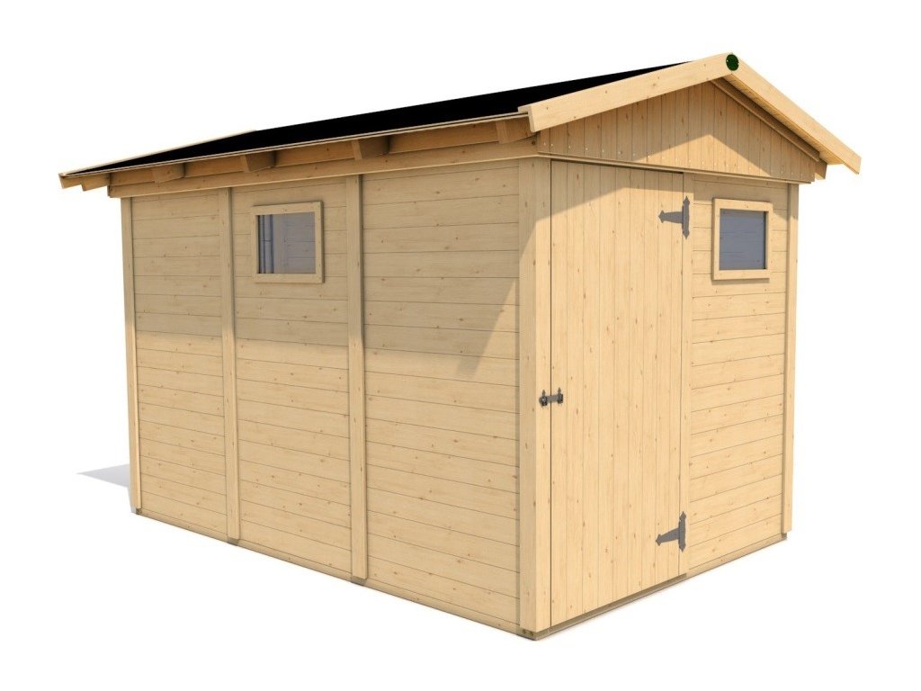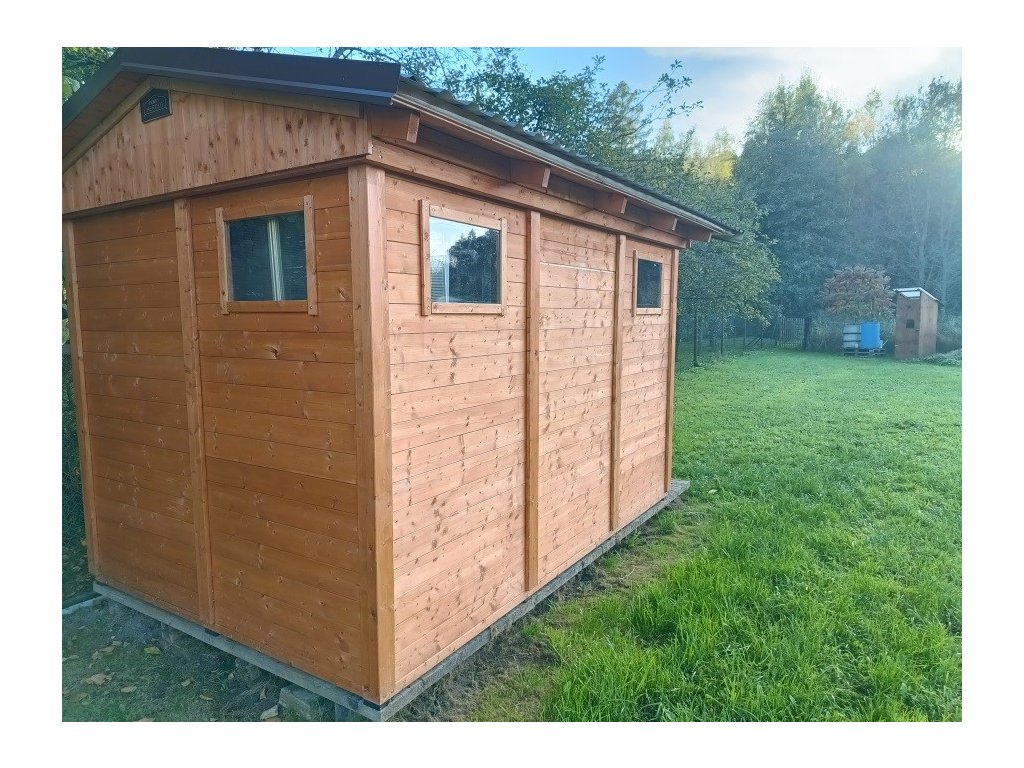 Zahradní domek má přírodní barvu bez jakékoliv povrchové úpravy a je připraven k dalším nátěrům a impregnacím.