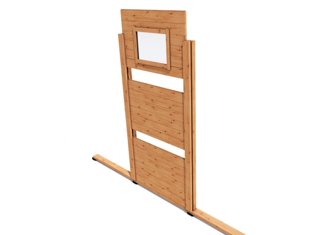 Domek je dodáván v jednotlivých částech (panelech) a zahrnuje veškerý instalační materiál, což znamená, že není potřeba dokupovat žádné další součásti.
