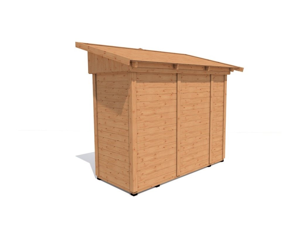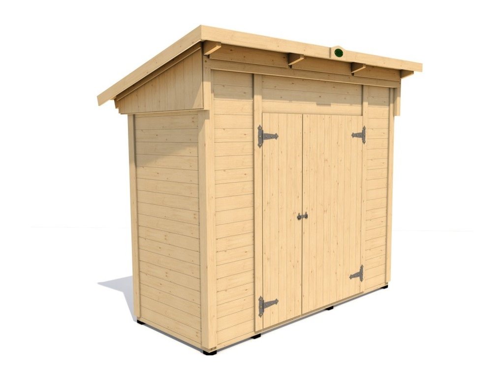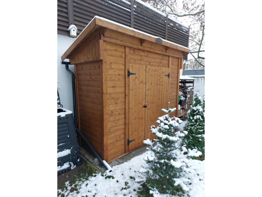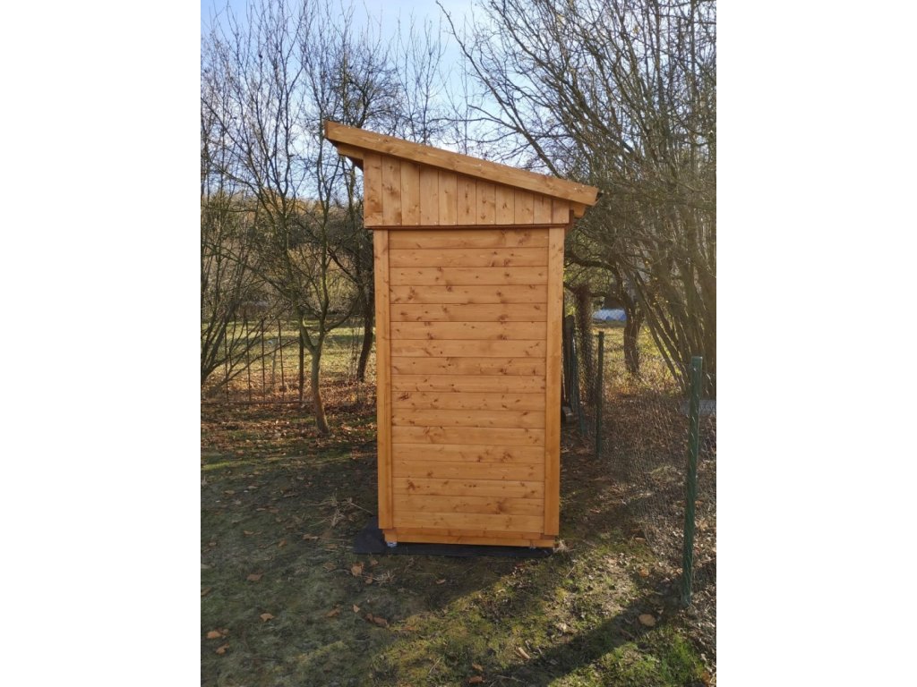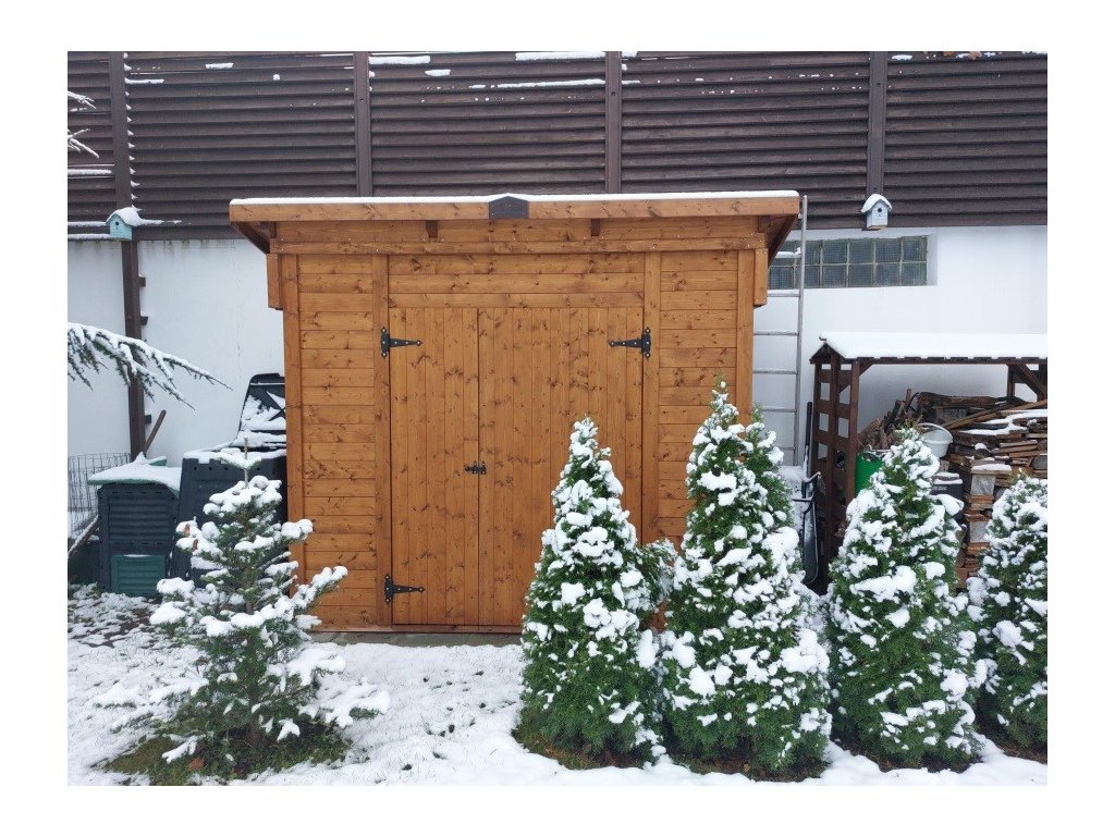 Zahradní domek má přírodní barvu bez jakékoliv povrchové úpravy a je připraven k dalším nátěrům a impregnacím.