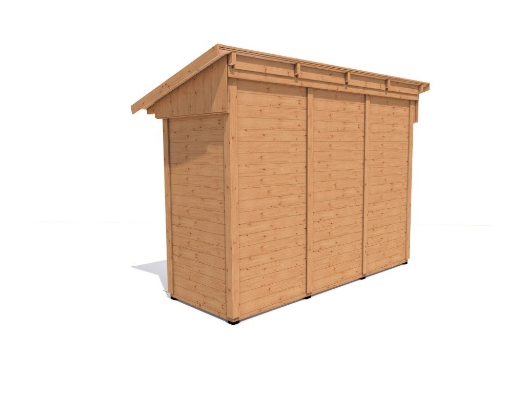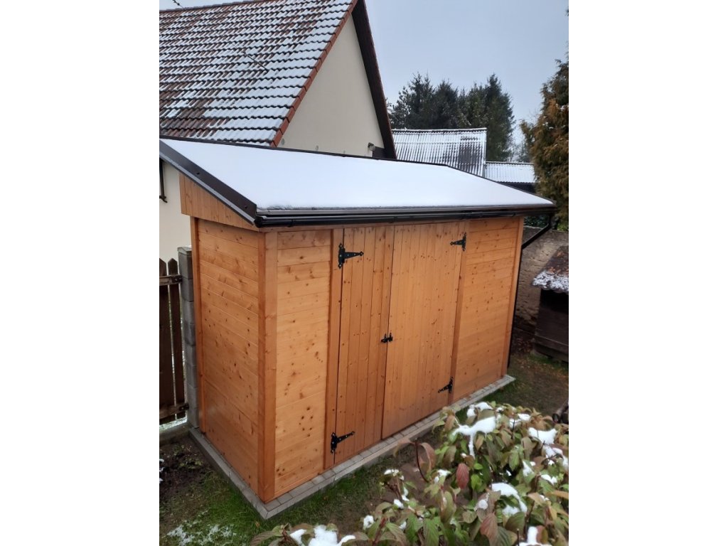 Zahradní domek má přírodní barvu bez jakékoliv povrchové úpravy a je připraven k dalším nátěrům a impregnacím.