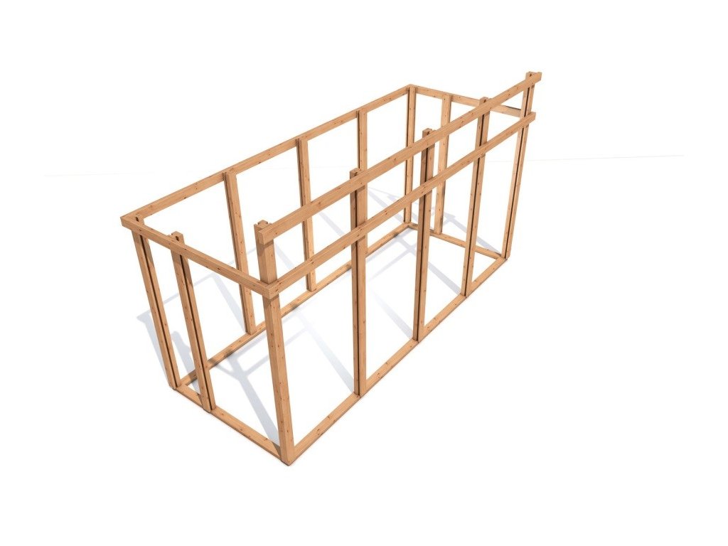 Domek je dodáván v jednotlivých částech (panelech) a zahrnuje veškerý instalační materiál, což znamená, že není potřeba dokupovat žádné další součásti.